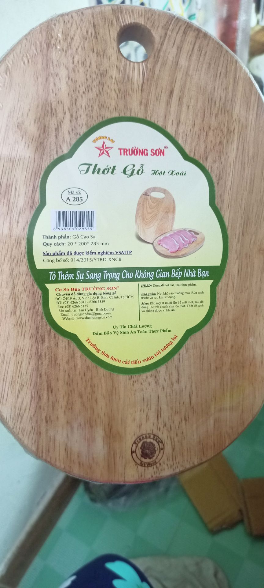 Tên sản phẩm: Thớt Gỗ Cao Su Hột Xoài A285 - thương hiệu Trường Sơn