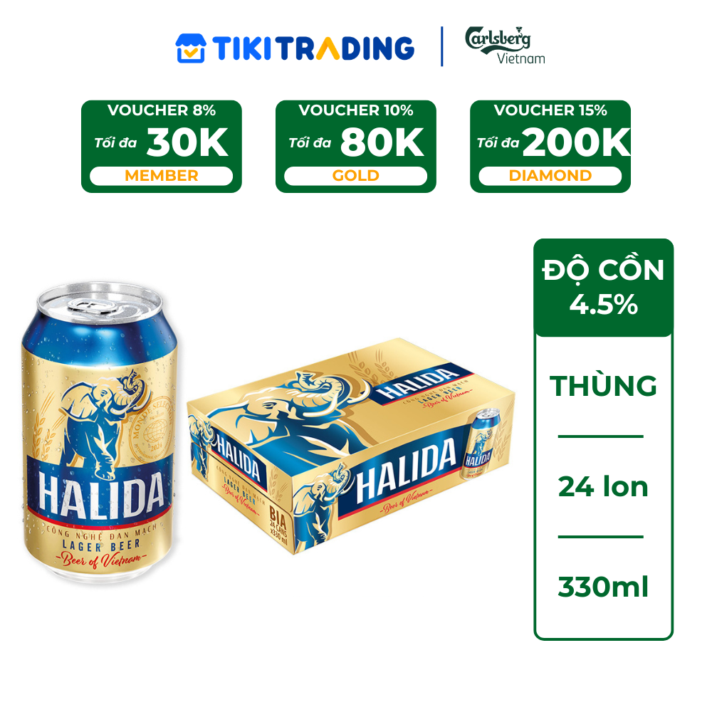 Thông số kỹ thuật Thùng 24 lon Bia Lager Halida (330ml/lon) - Độ cồn 4.5%