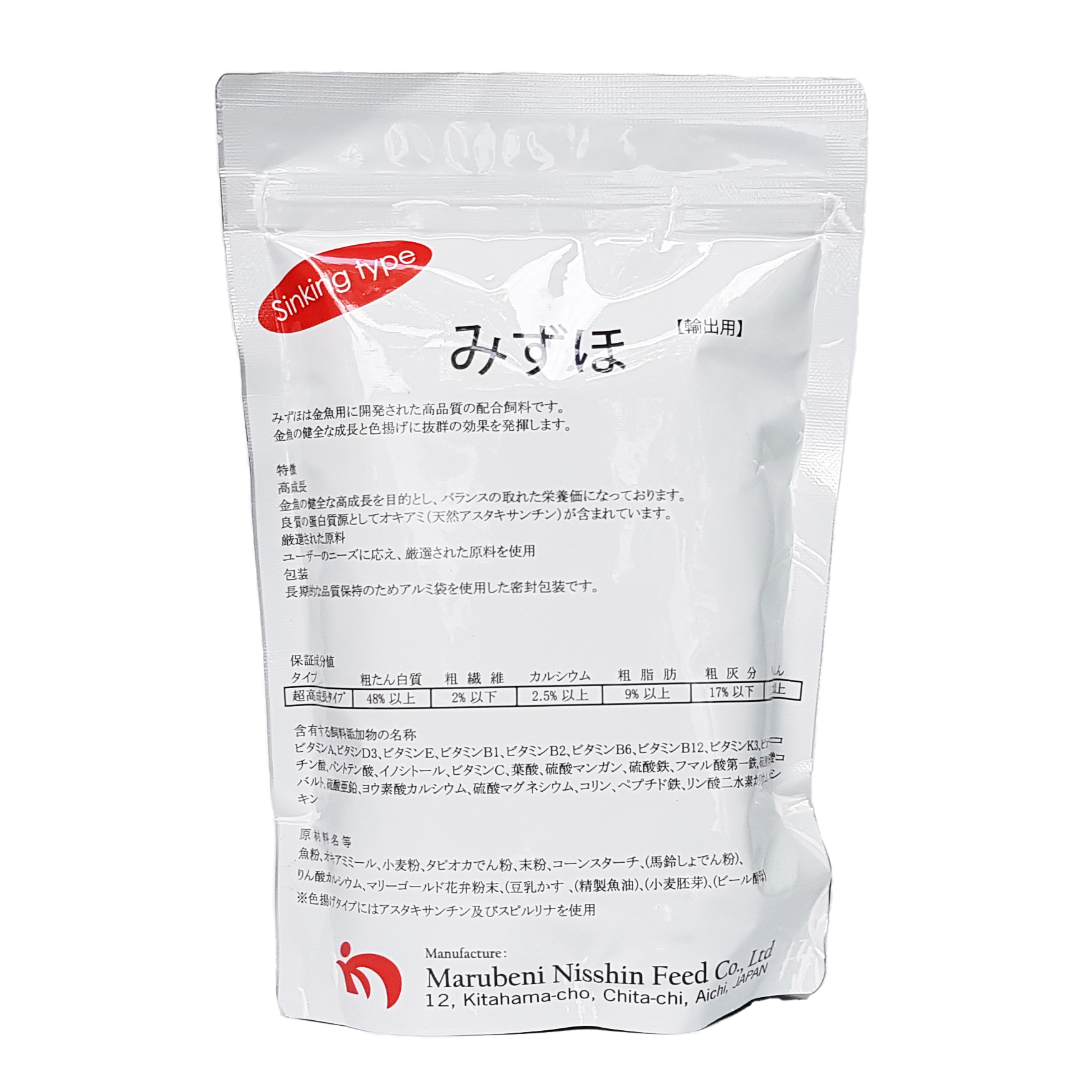 - Thức Ăn Cá Vàng Mizuho Goldfish Food là thức ăn hỗn hợp chất lượng cao, do tập đoàn Marubeni Nisshin Nhật Bản sản xuất chuyên cho cá vàng. Thức ăn Mizuho Goldfish Food có hàm lượng chất dinh dưỡng cao, giúp cá vàng tăng trưởng, lên màu và phát triển khỏe mạnh.