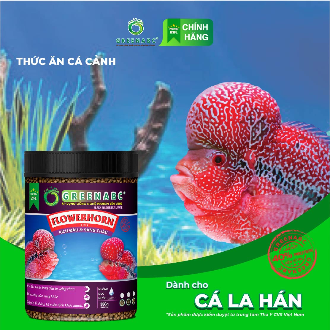 Thông số kỹ thuật Thức ăn Cá La Hán GREENABC – Hàm lượng protein 40 kích bung đầu to, châu sáng, vảy rực rỡ – Hộp 350g