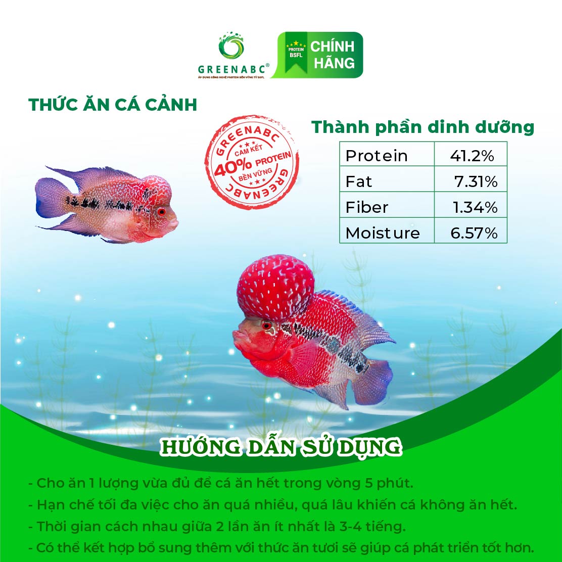 Sản phẩm GREENABC cung cấp các giá trị dinh dưỡng bền vững cho thú cưng, giúp cho Cá La Hán: