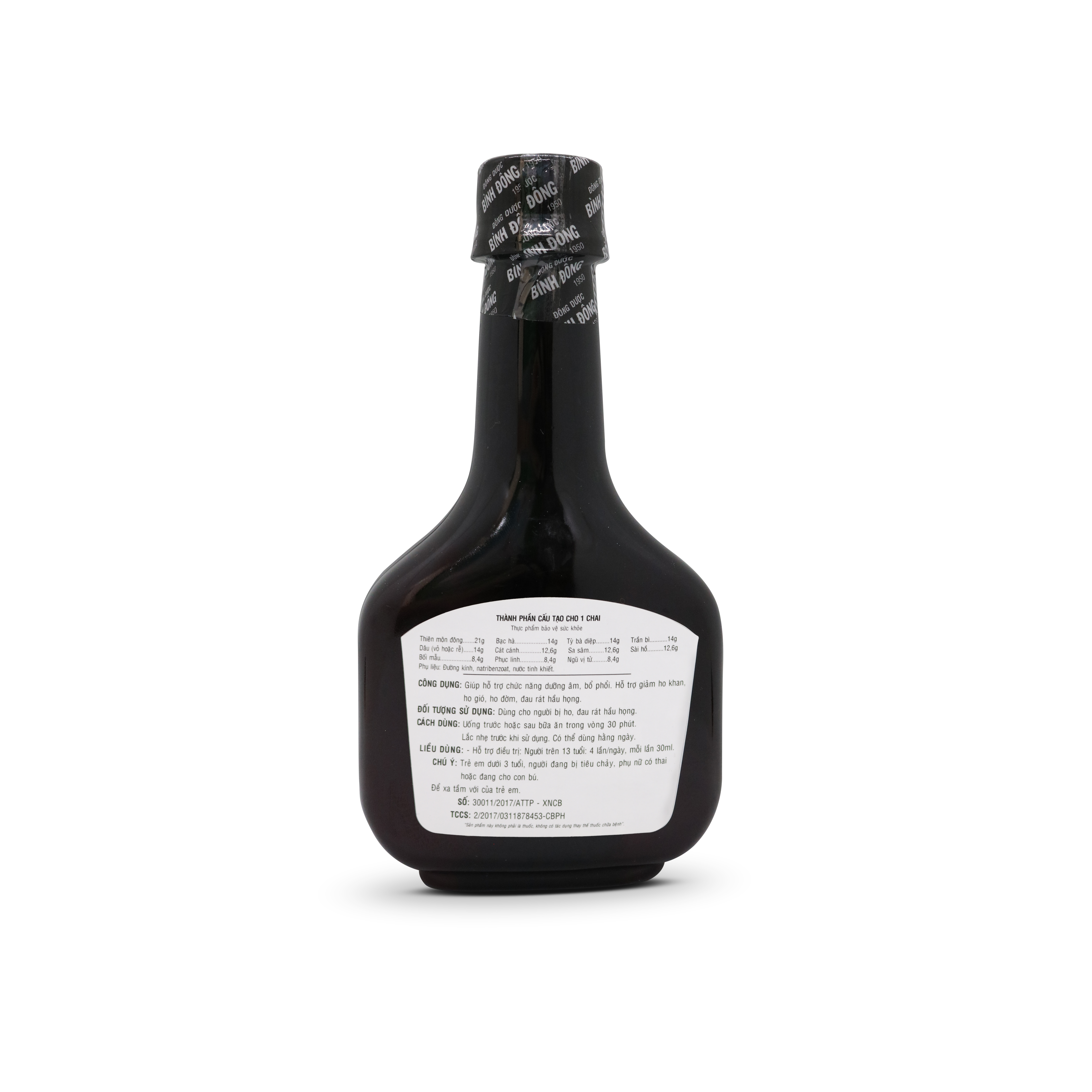 - Phụ liệu: Đường kính, Natri benzoat, Nước tinh khiết vừa đủ.