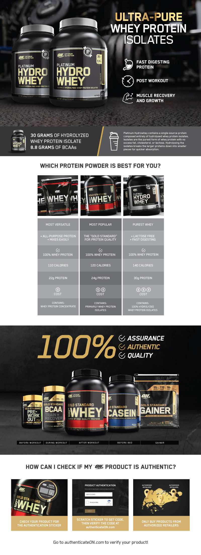 Với việc kết hợp các thành phần tinh túy nhất và 1 loạt các kỹ thuật xử lý chuyên môn cao, Optimum Nutrition (ON) đã tạo ra 1 sản phẩm Whey Protein giá trị nhất từ trước đến nay: Platinum HydroWhey Protein.