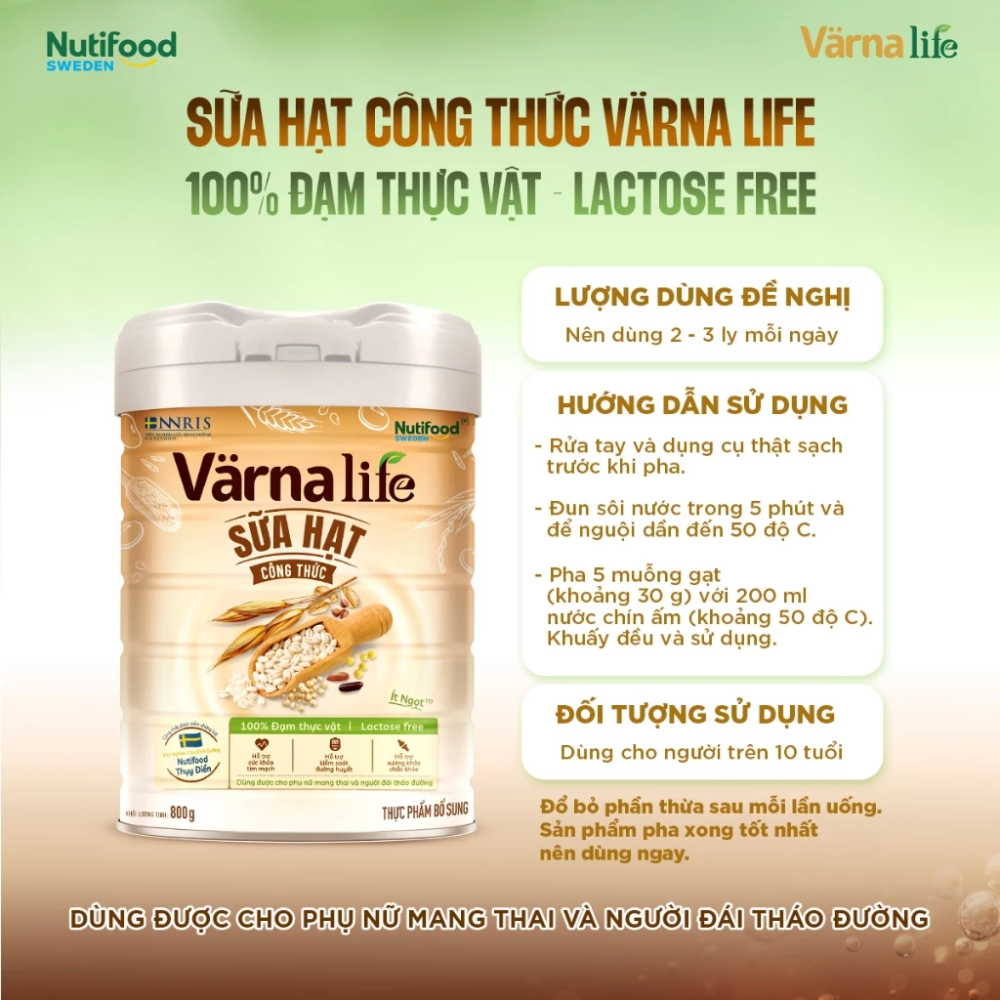 Thông số kỹ thuật Thực phẩm bổ sung sữa hạt công thức Varna Life