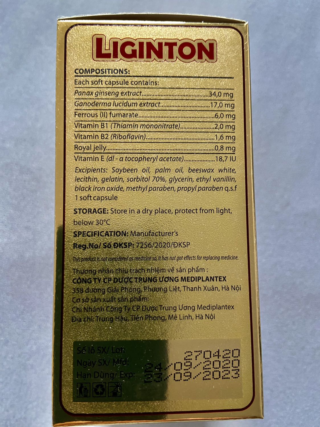 Thông số kỹ thuật Thực Phẩm Chức Năng Tăng Cường Sinh Lực, Bồi Bổ Khí Huyết Mediplantex Liginton (50 Viên / Hộp)
