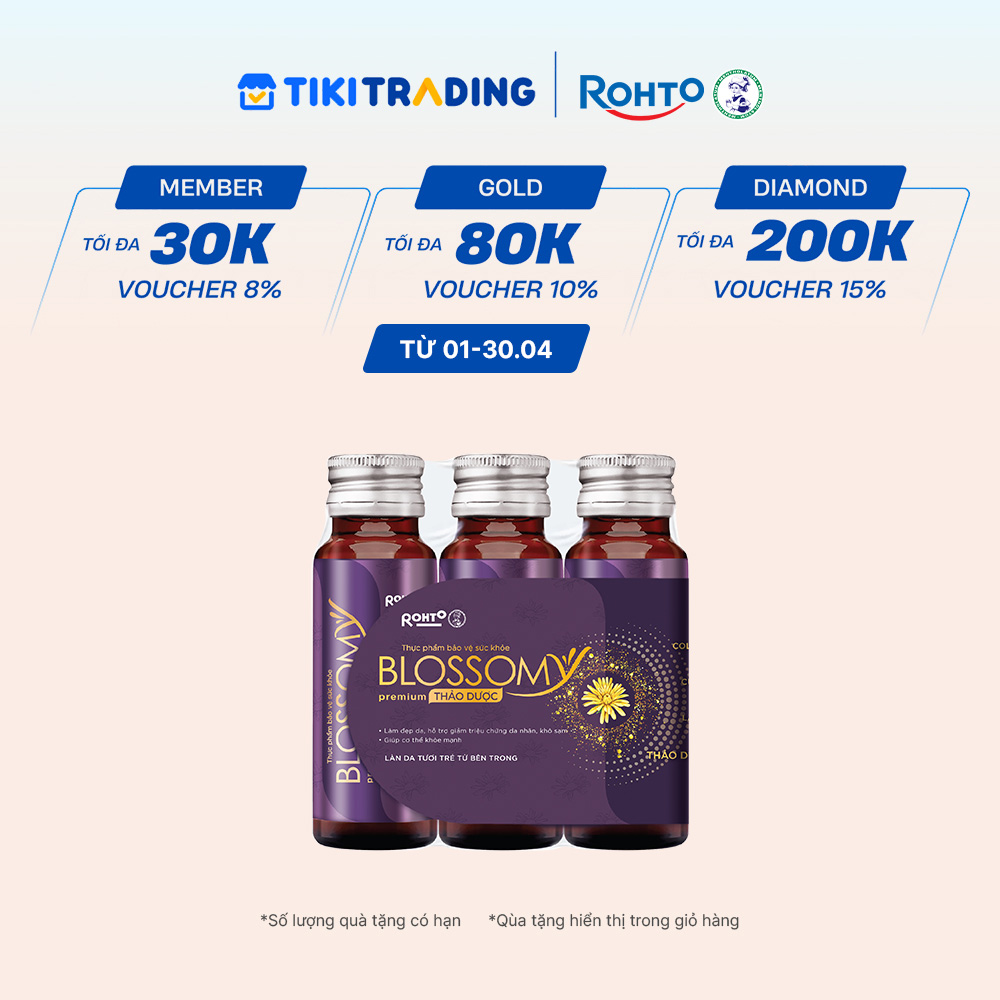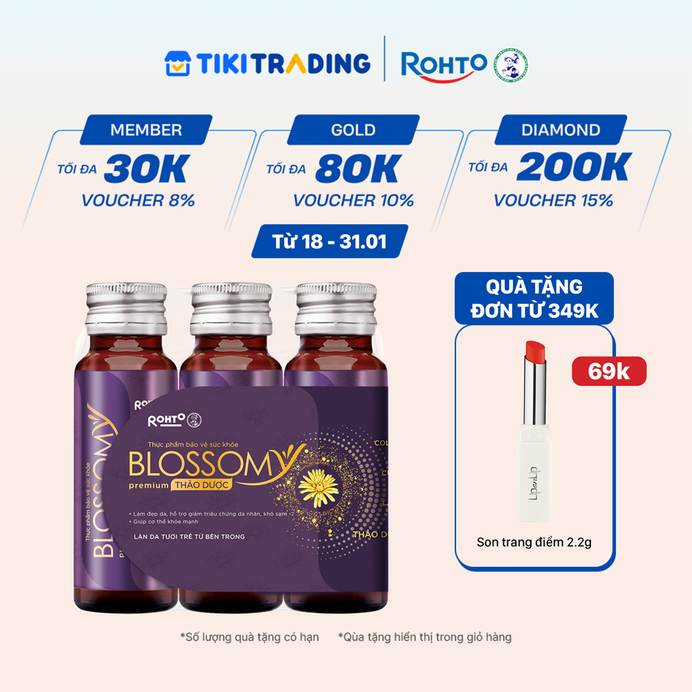 Thực phẩm collagen uống hệ thảo dược Rohto Blossomy Premium hộp 03 chai x 50ml