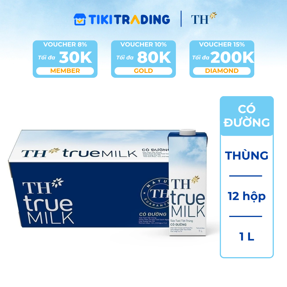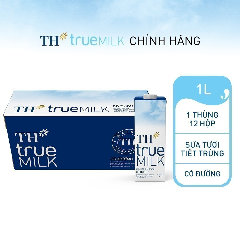 Thông số kỹ thuật Thùng 12 hộp sữa tươi tiệt trùng TH True Milk có đường 1 Lít