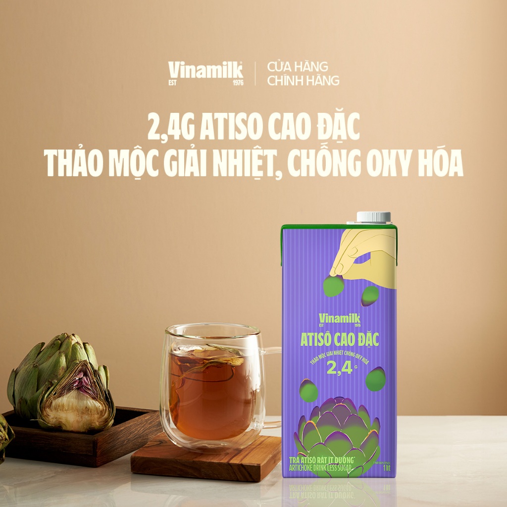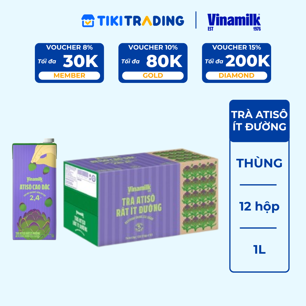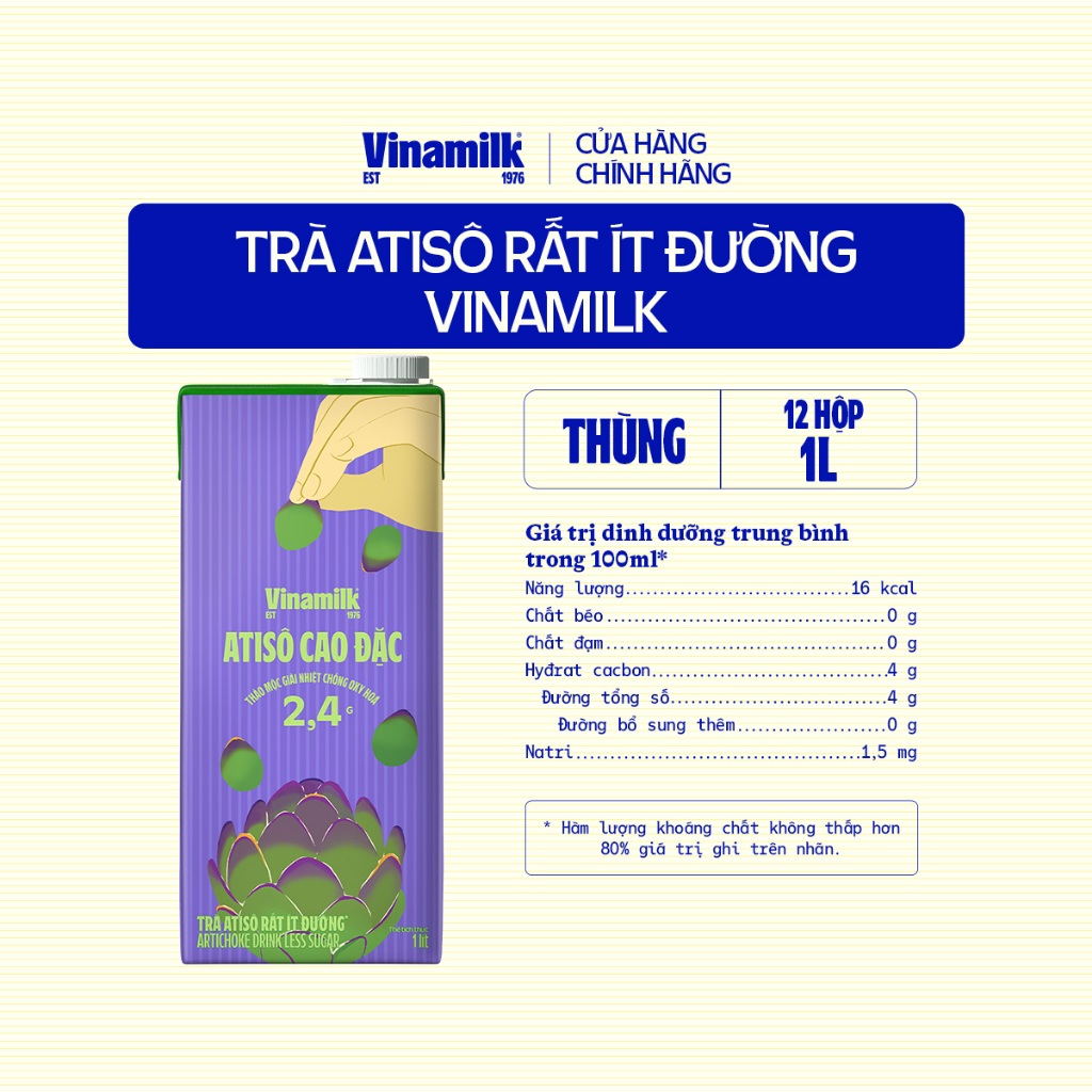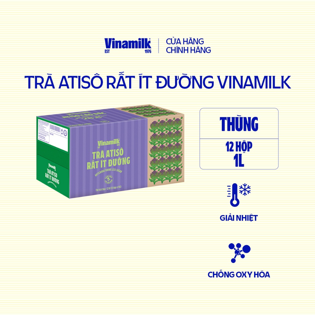 Thông số kỹ thuật Thùng 12 hộp Trà Atisô ít đường Vinamilk - Hộp giấy 1L