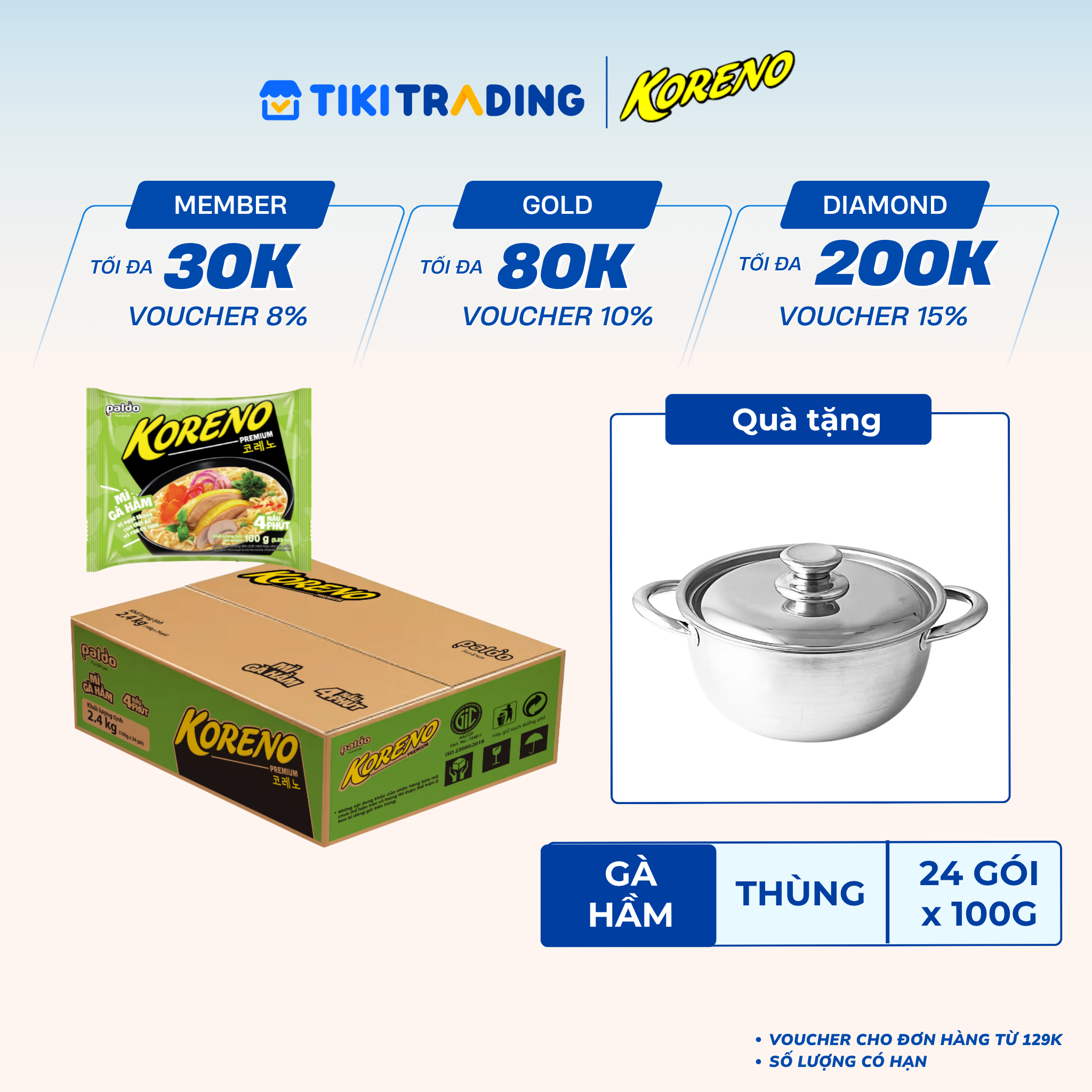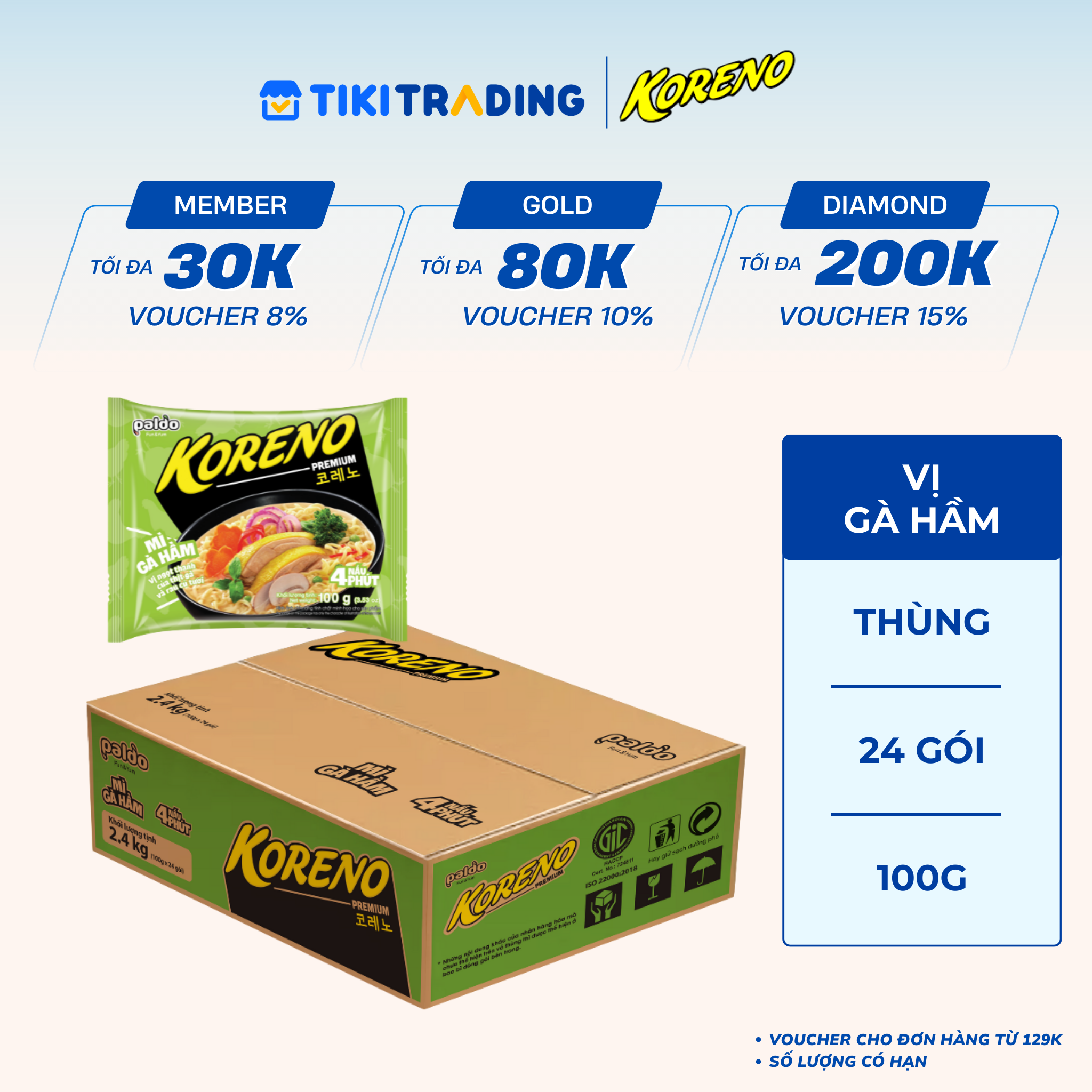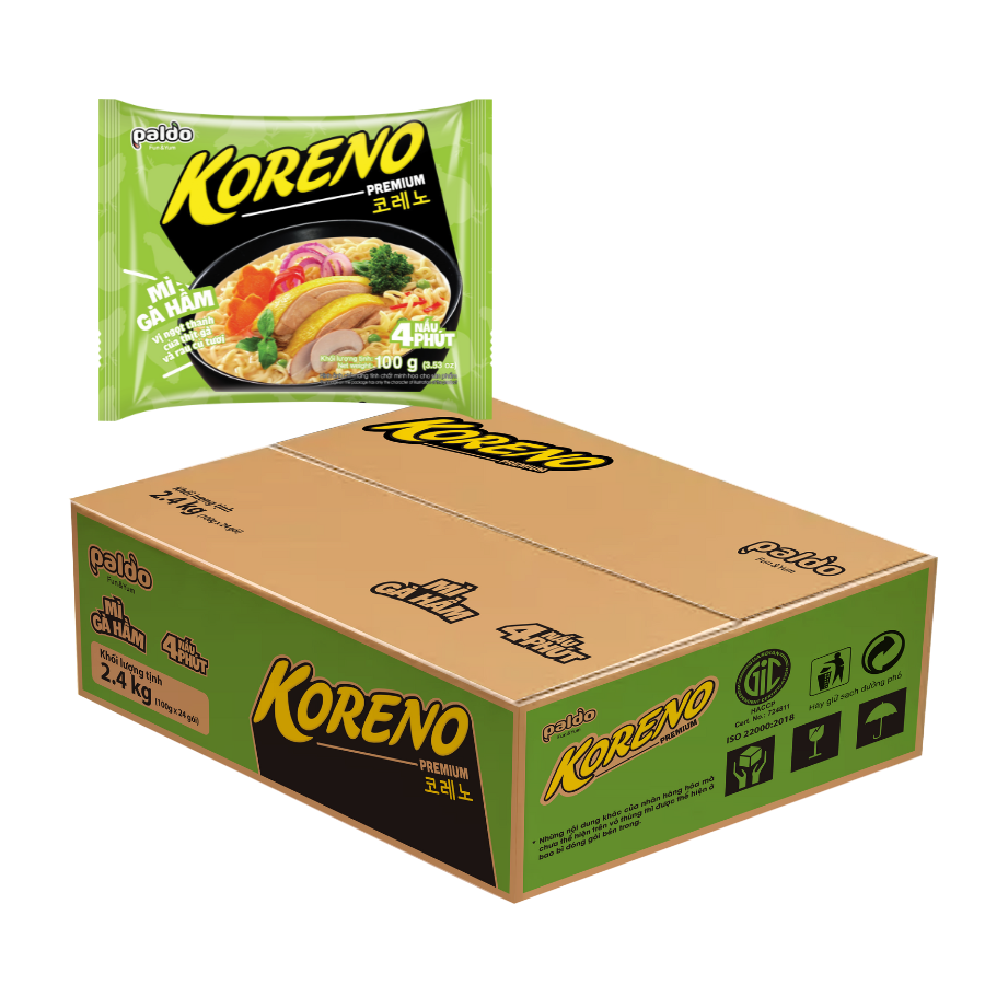 Thông số kỹ thuật Thùng 24 Gói Mì Gà Hầm Koreno Premium