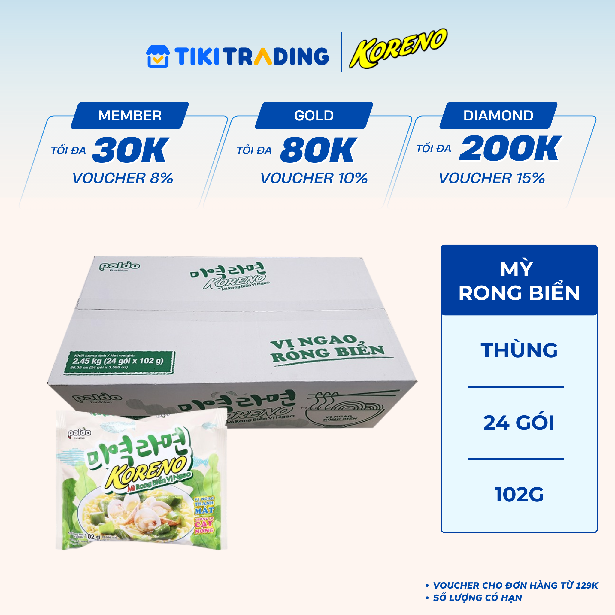 Thông số kỹ thuật Thùng 24 Gói Mì Koreno Rong Biển Vị Ngao 102g