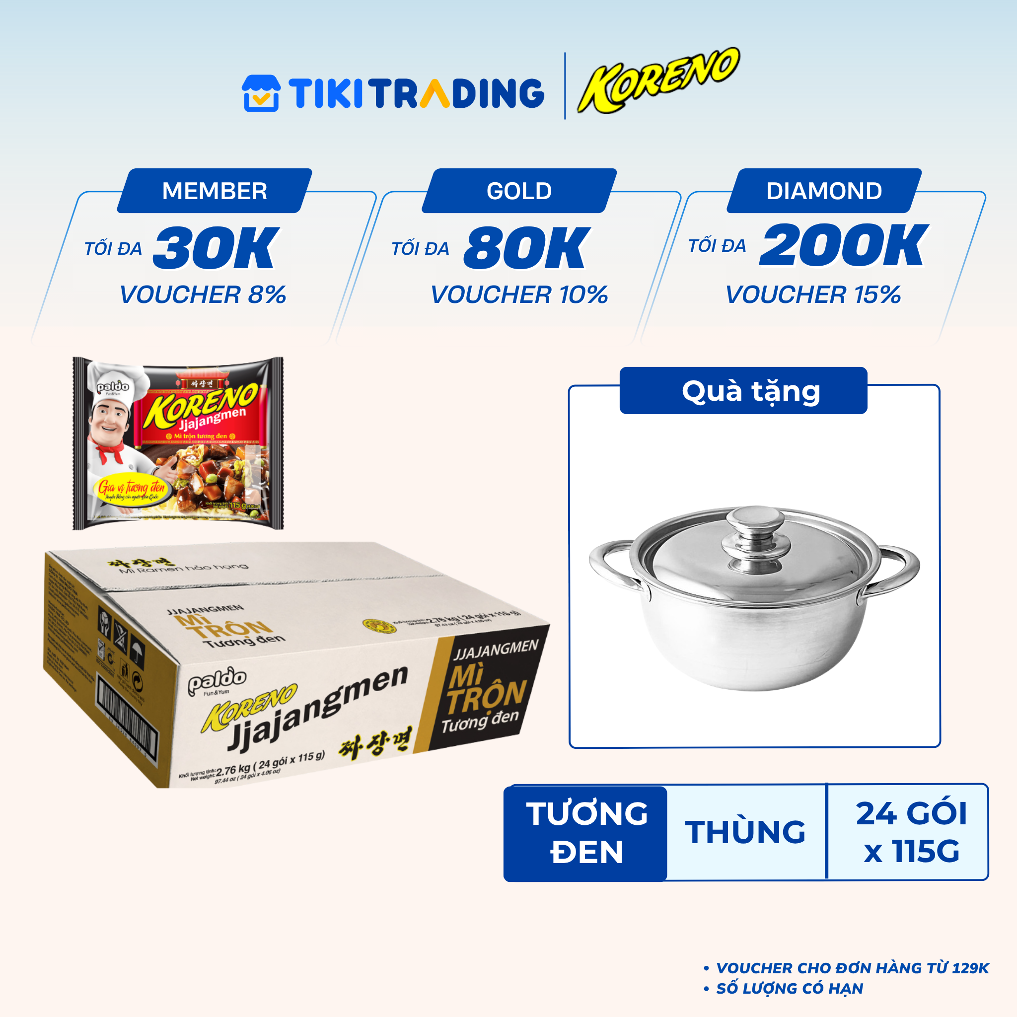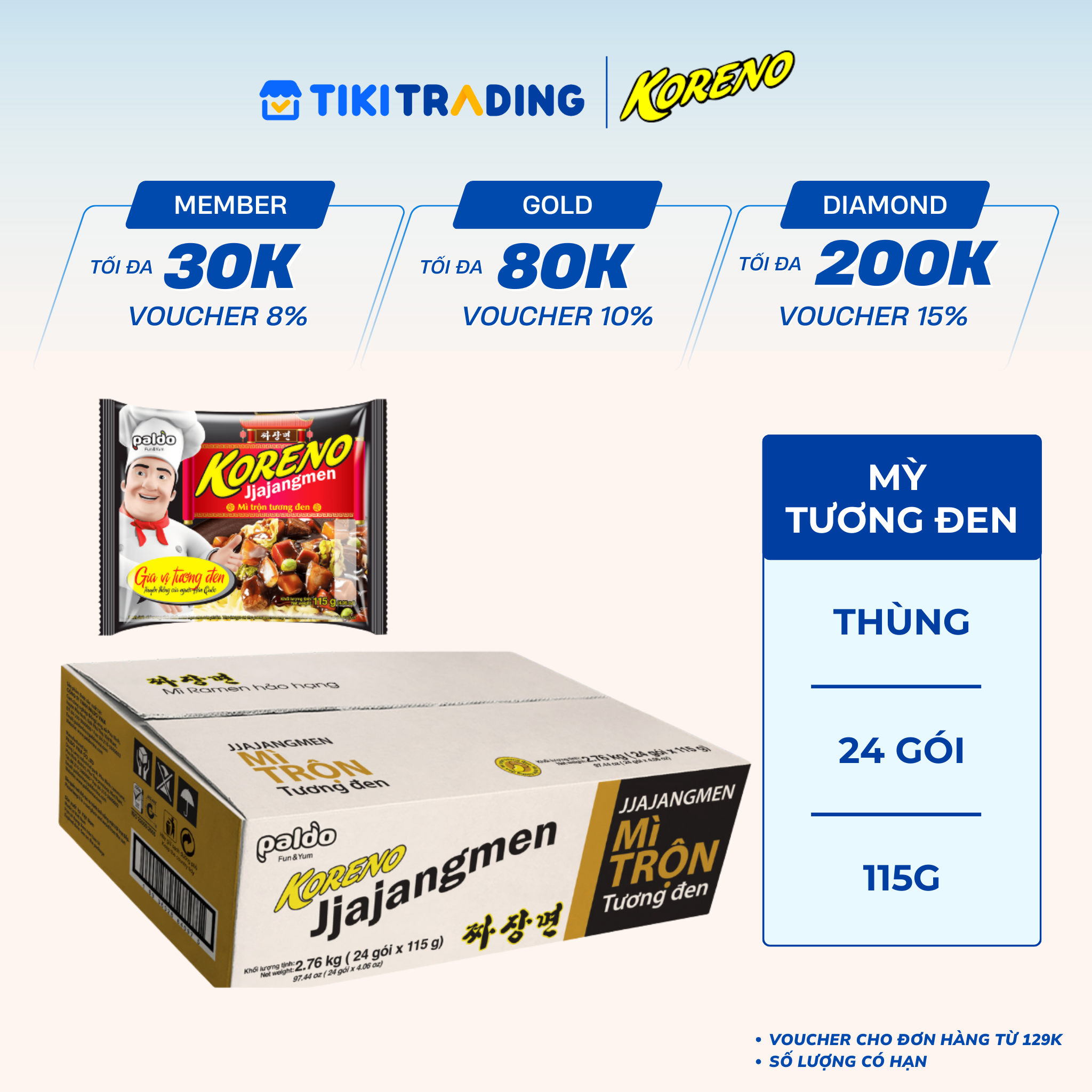 Thông số kỹ thuật Thùng 24 Gói Mì Trộn Tương Đen Koreno Jjajangmen 115g