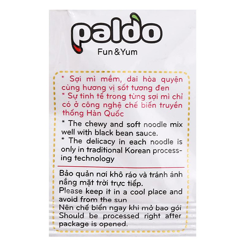 Mì Koreno Jjajangmen là 1 sự phá cách mới của Paldo Vina. Kết hợp sợi mì mềm dai hòa quyện với gia vị tương đen, một loại gia vị nhập khẩu từ Hàn Quốc và được làm từ các nguyên liệu tươi ngon nhất, tạo nên hương thơm thật quyến rũ khi thưởng thức.