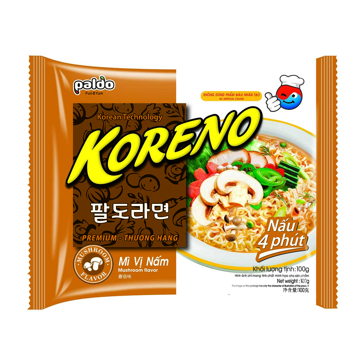 Mì Koreno vị Nấm là dòng sản phảm thế mạnh của Paldo. Sự tinh tế trong từng gói mì được cải tiến với công nghệ Hàn Quốc, đem đến độ dai giòn bóng bẩy, hòa quyện với nước dùng đặc trưng, tạo nên hương vị, mùi thơm tinh tế, quyến rũ.