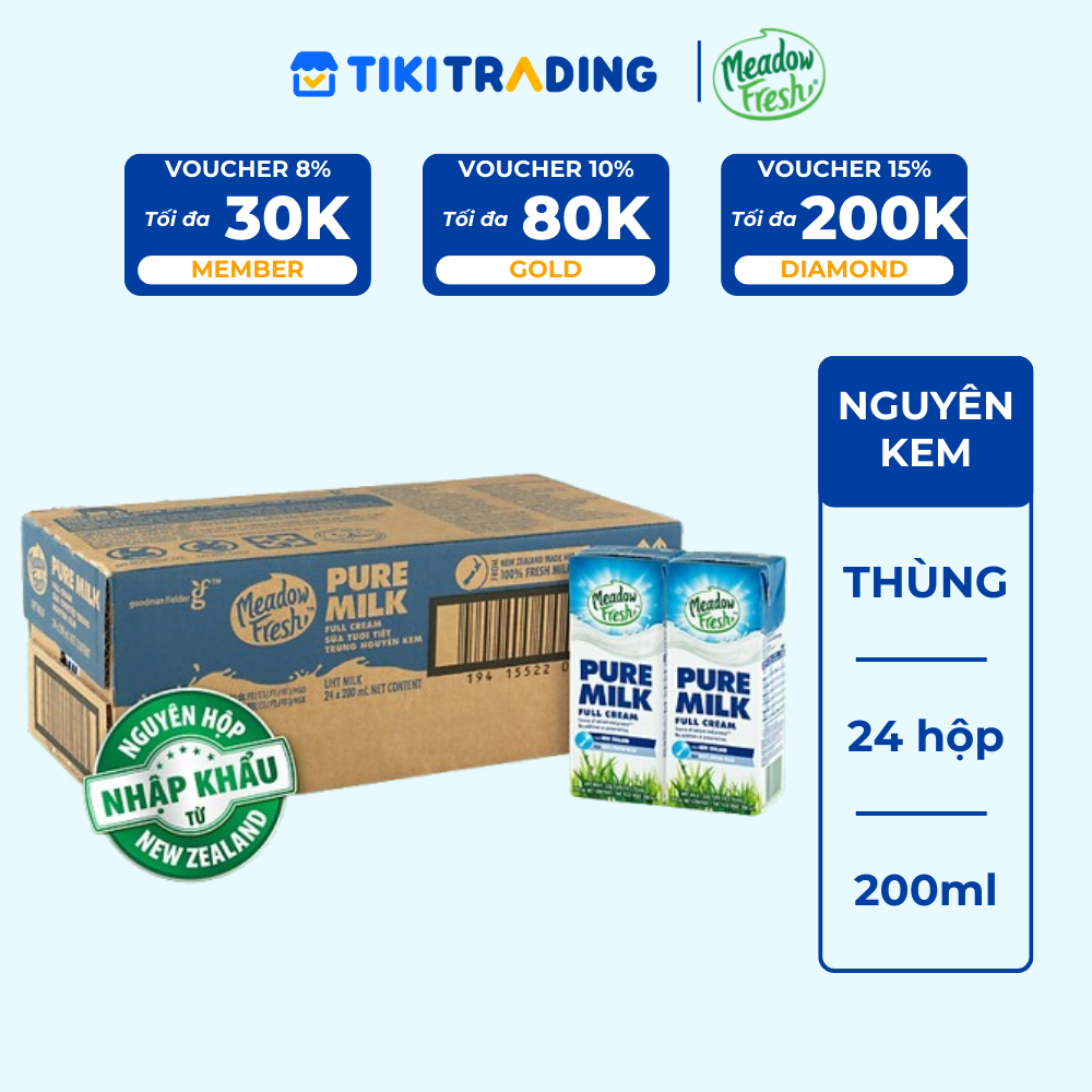 Thông số kỹ thuật Thùng 24 Hộp Sữa Tươi Nguyên Kem Meadow Fresh (200ml / Hộp)