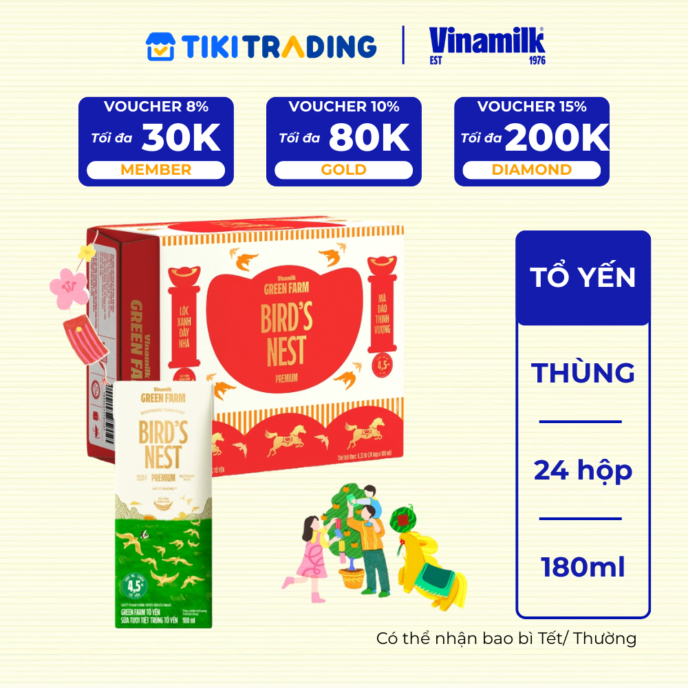 Thông số kỹ thuật Thùng 24 hộp Sữa tươi tiệt trùng chứa tổ yến Vinamilk Green farm - hộp 180ml
