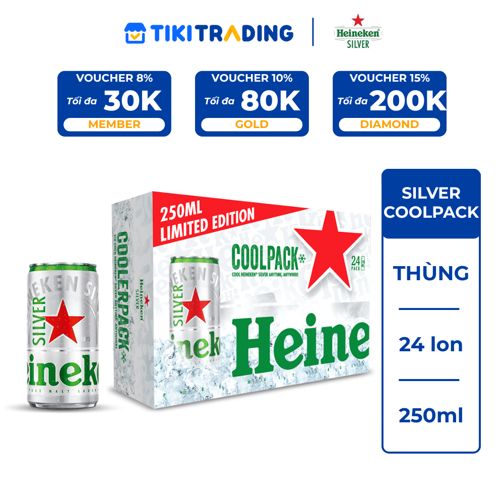 Thông số kỹ thuật Thùng 24 lon bia Heineken Silver Coolpack 250ml/lon