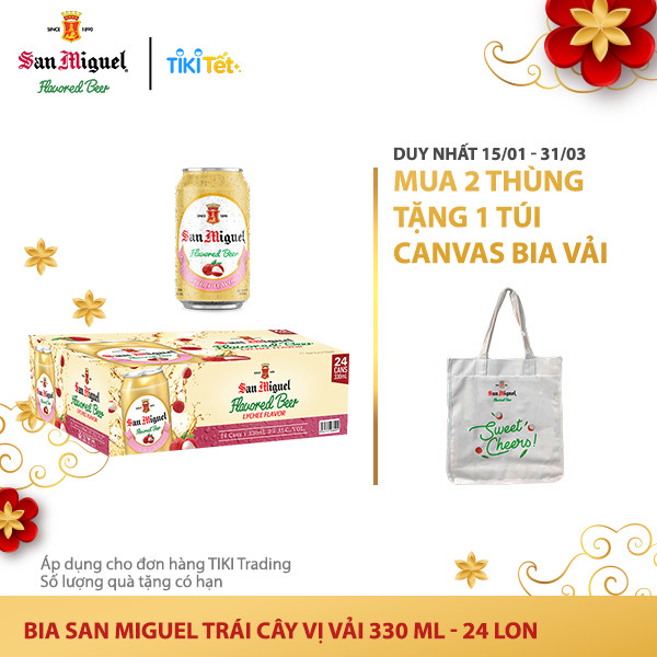 - Thùng 24 Lon Bia SAN MIGUEL Trái Cây Vị Vải 330 ml chất bia vàng nhạt sánh mịn , dễ uống , khơi gợi vị bia trái cây tươi mát với hương vị vải riêng biệt , ngọt ngào và tinh tế , nồng độ cồn 3 độ.