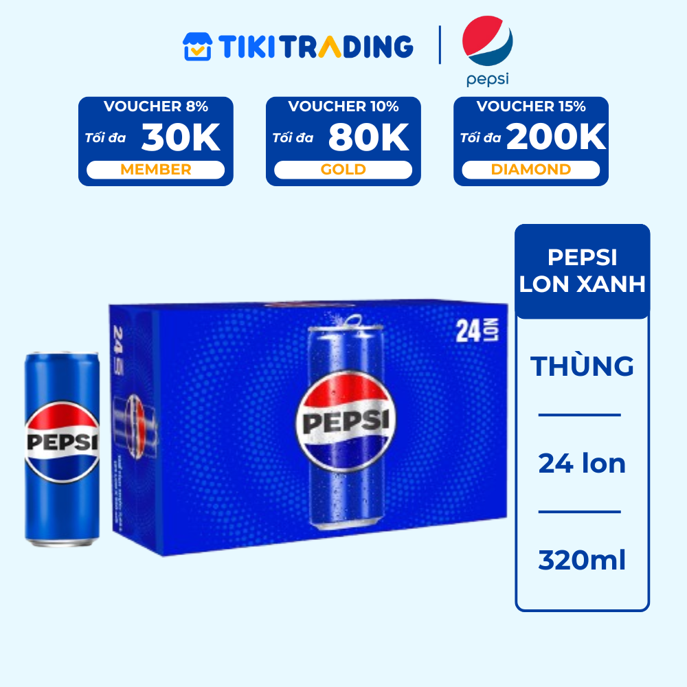 Thông số kỹ thuật Thùng 24 Lon Nước Ngọt Có Gaz Pepsi lon xanh (320ml/lon)