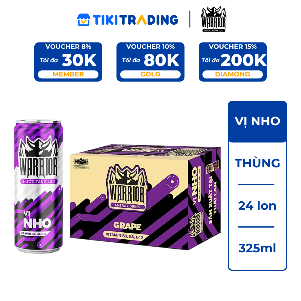 - Nước tăng lực Warrior hương nho,Sau một ngày với nhiều hoạt động mệt mỏi, một chai nước tăng lực Warrior hương nhỏ sẽ giúp cơ thể bạn bù lại lượng nước đã mất. Đồng thời, còn chống mệt mỏi và đẩy lùi cảm giác buồn ngủ.
