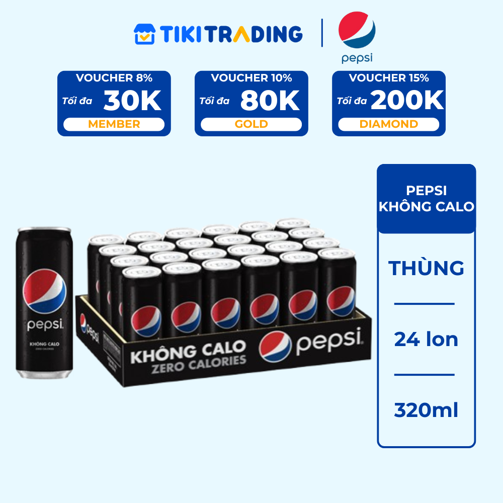Thông số kỹ thuật Thùng 24 Lon Nước Uống Có Gaz Pepsi Không Calo (320ml/Lon)
