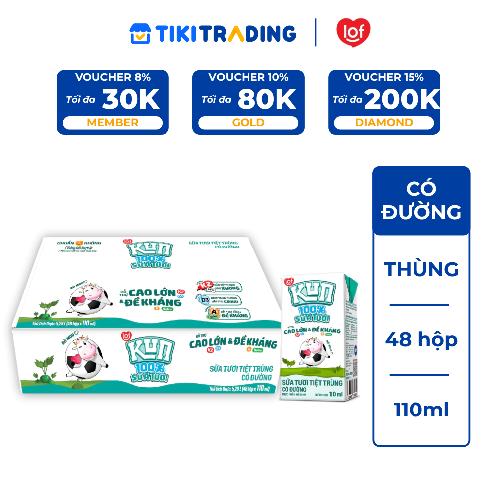 KUN 100% Sữa tươi với nguồn sữa tươi ngon nguyên chất giàu dinh dưỡng, được bổ sung vitamin K2, A, D3, và Selen hỗ trợ cao lớn và tăng cường đề kháng.Cho trẻ luôn tươi vui, khỏe mạnh và phát triển mỗi ngày. Sữa bò tươi (96%), đường (3.8%), chất ổn định (407, 471), hương liệu tự nhiên, vitamin và khoáng chất (K2 - MK7, A, D3, natri selenit). Bảo quản nơi khô ráo và thoáng mát, tránh ánh nắng trực tiếp. Hiện tượng thay đổi màu sắc và lắng đọng tự nhiên không làm ảnh hưởng đến chất lượng sản phẩmGiá sản phẩm trên Tiki đã bao gồm thuế theo luật hiện hành. Bên cạnh đó, tuỳ vào loại sản phẩm, hình thức và địa chỉ giao hàng mà có thể phát sinh thêm chi phí khác như phí vận chuyển, phụ phí hàng cồng kềnh, thuế nhập khẩu (đối với đơn hàng giao từ nước ngoài có giá trị trên 1 triệu đồng).....