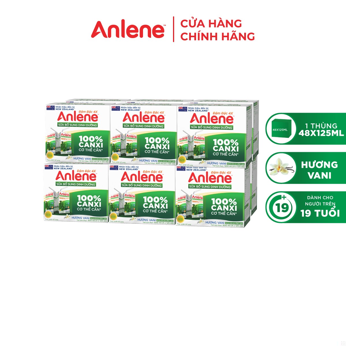 Thông số kỹ thuật Thùng 48 Hộp Sữa Anlene Đậm Đặc 4X Ít Béo Hương Vani (12 x 4 x 125 ml)