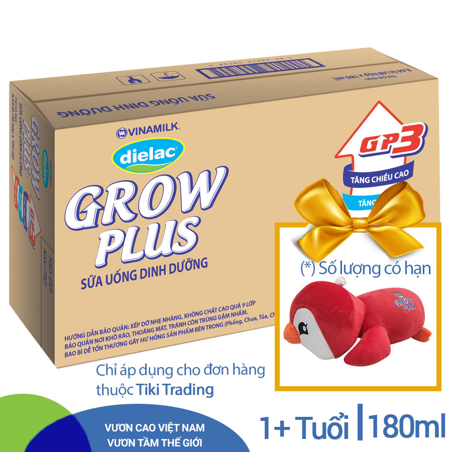 Thùng 48 Hộp Sữa Bột Pha Sẵn Vinamilk Dielac Grow Plus - Đỏ 180ml Tăng cân và chiều cao: Giàu đạm và năng lượng, đặc biệt bổ sung đạm whey giàu Alpha-Lactalbumin chứa nhiều các axít amin thiết yếu và chất béo chuyển hóa nhanh MCT giúp bé tăng cân tốt. Ngoài ra hàm lượng Canxi, Vitamin D3 cao theo nhu cầu dinh dưỡng khuyến nghị DRI Hoa Kỳ, hỗ trợ hấp thu Canxi, giúp phát triển xương và chiều cao của trẻ.