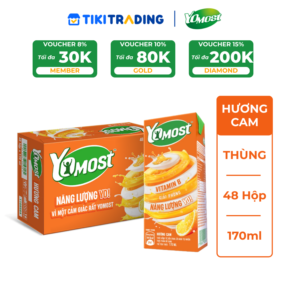 - Thùng 48 Hộp Sữa Chua Lên Men Tự Nhiên Yomost Vị Cam được làm từ sữa chua lên men tự nhiên kết hợp cùng hương vị cam tươi tự nhiên thơm ngon, giúp cung cấp nhiều loại dưỡng chất cần thiết cho cơ thể như protein, canxi và vitamin cho cơ thể.