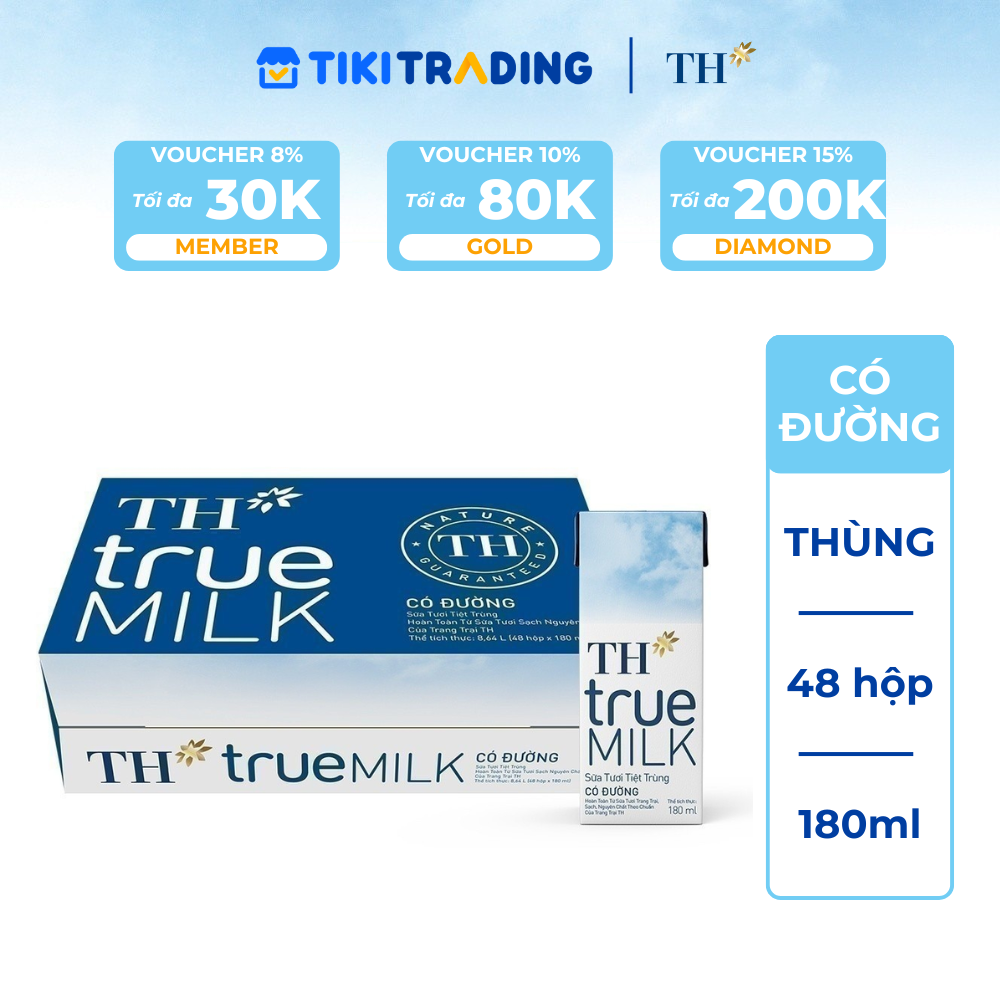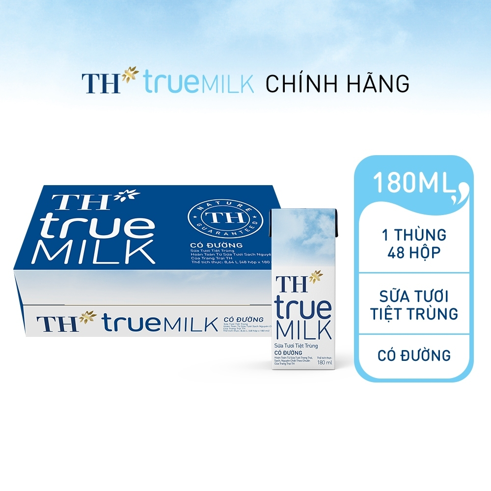 Thông số kỹ thuật Thùng 48 hộp sữa tươi tiệt trùng TH True Milk có đường 180ml