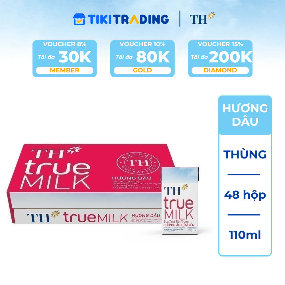 Thông số kỹ thuật Thùng 48 hộp sữa tươi tiệt trùng TH True Milk hương dâu tự nhiên 110ml