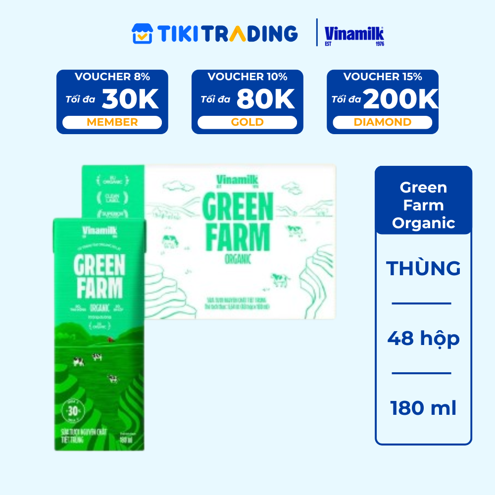 Thông số kỹ thuật Thùng 48 hộp Sữa Tươi Tiệt Trùng Vinamilk Green Farm Organic 180ml