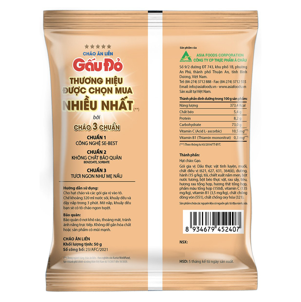 Thông số kỹ thuật Thùng 50 Gói Cháo Gấu Đỏ Thịt Bằm 50g