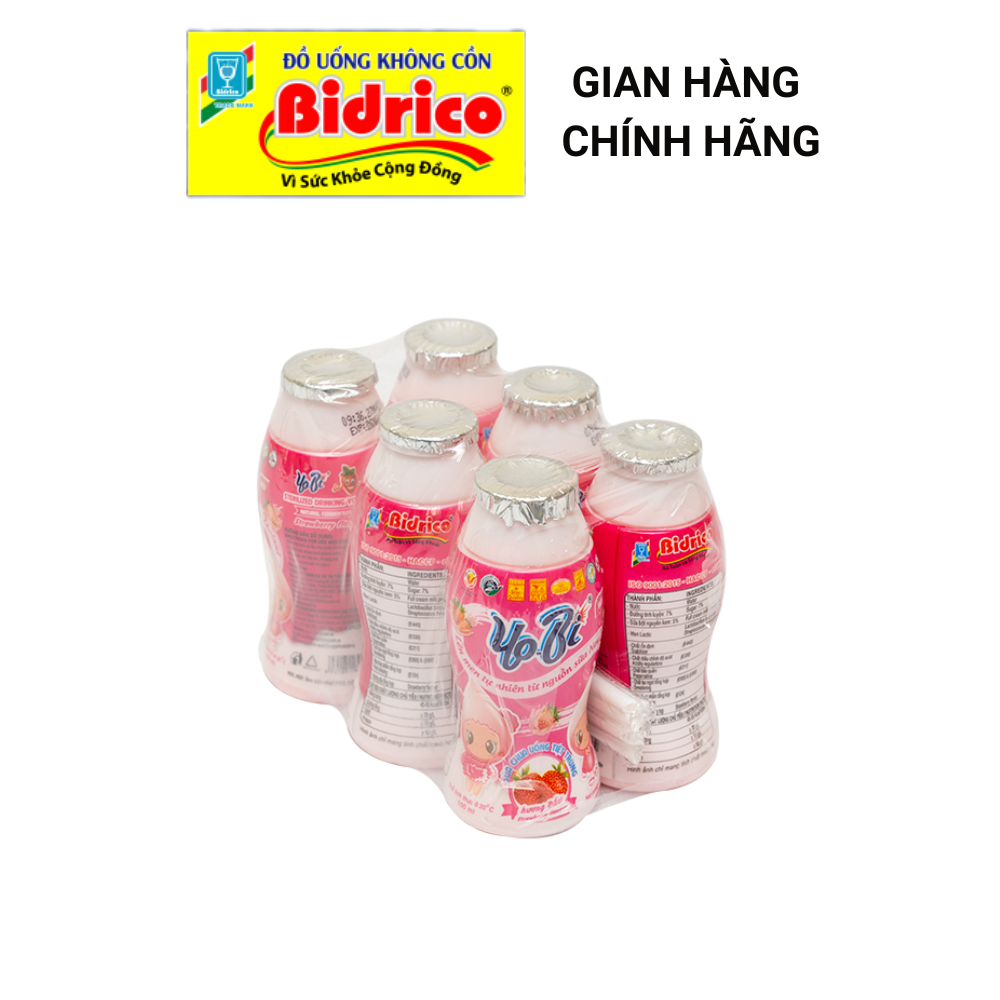 Sữa chua uống tiệt trùng hương dâu Yobi là sản phẩm bổ dưỡng với sự hoà quyện từ vị chua chua ngọt ngọt từ cốt trái dâu và vị thơm béo của sữa bột nguyên chất. Sản xuất trên dây chuyền và công nghệ hiện đại của châu Âu, hoàn toàn khép kín và tự động.