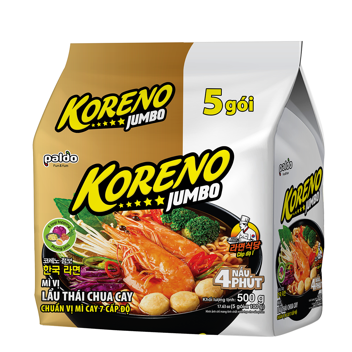 Thông số kỹ thuật Thùng 8 Lốc Mì vị Lẩu Thái chua cay Koreno Jumbo 500g
