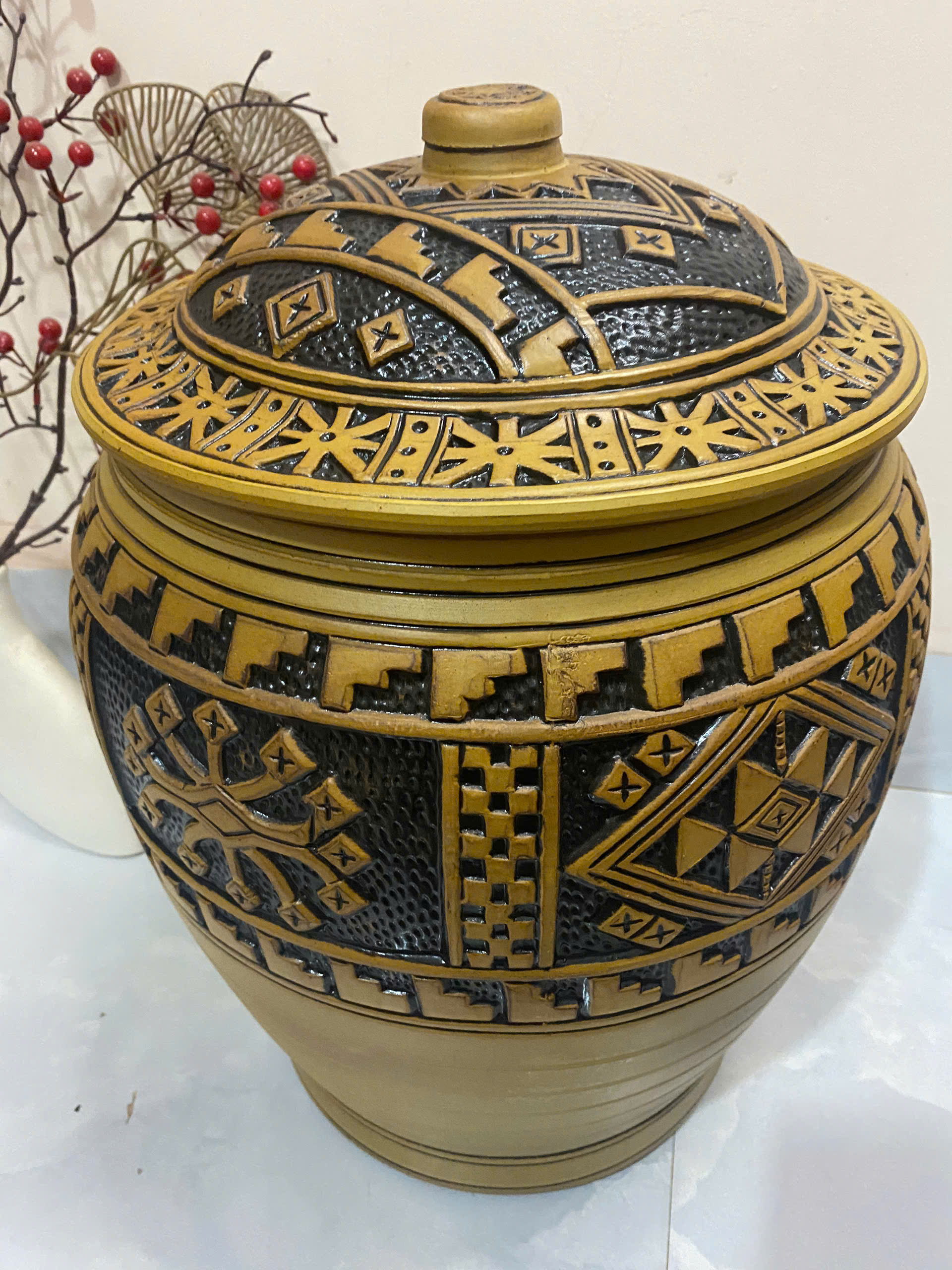 Hũ gạo Bát Tràng có dung tích 20 kg - Hũ gạo có thân bình dầy có tác dụng hút ẩm và chống mốc cho gao.