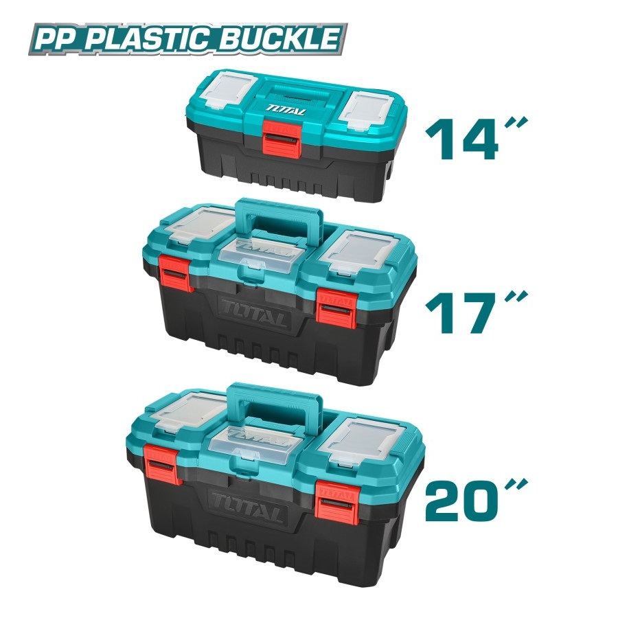 Thùng đựng đồ nghề khóa nhựa 14inches, 17inches, 20inches TOTAL được sử dụng để bỏ gọn những đồ nghề, các loại máy móc thường xuyên được những người thợ sử dụng như khoan, máy mài, máy mơn, búa tay, kềm,…