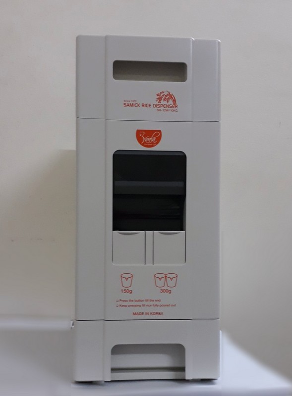 Thay vì dùng cốc đong gạo thông thường thì Thùng đựng gạo SAMICK có 2 nút ấn lấy gạo thông minh: nút thứ nhất 150g, nút thứ hai 300g. Bạn chỉ cần ấn nút, gạo sẽ chảy xuống khay chứa đúng trọng lượng. Bạn có thể tự ước lượng số gạo cần lấy một cách chuẩn xác nhất.