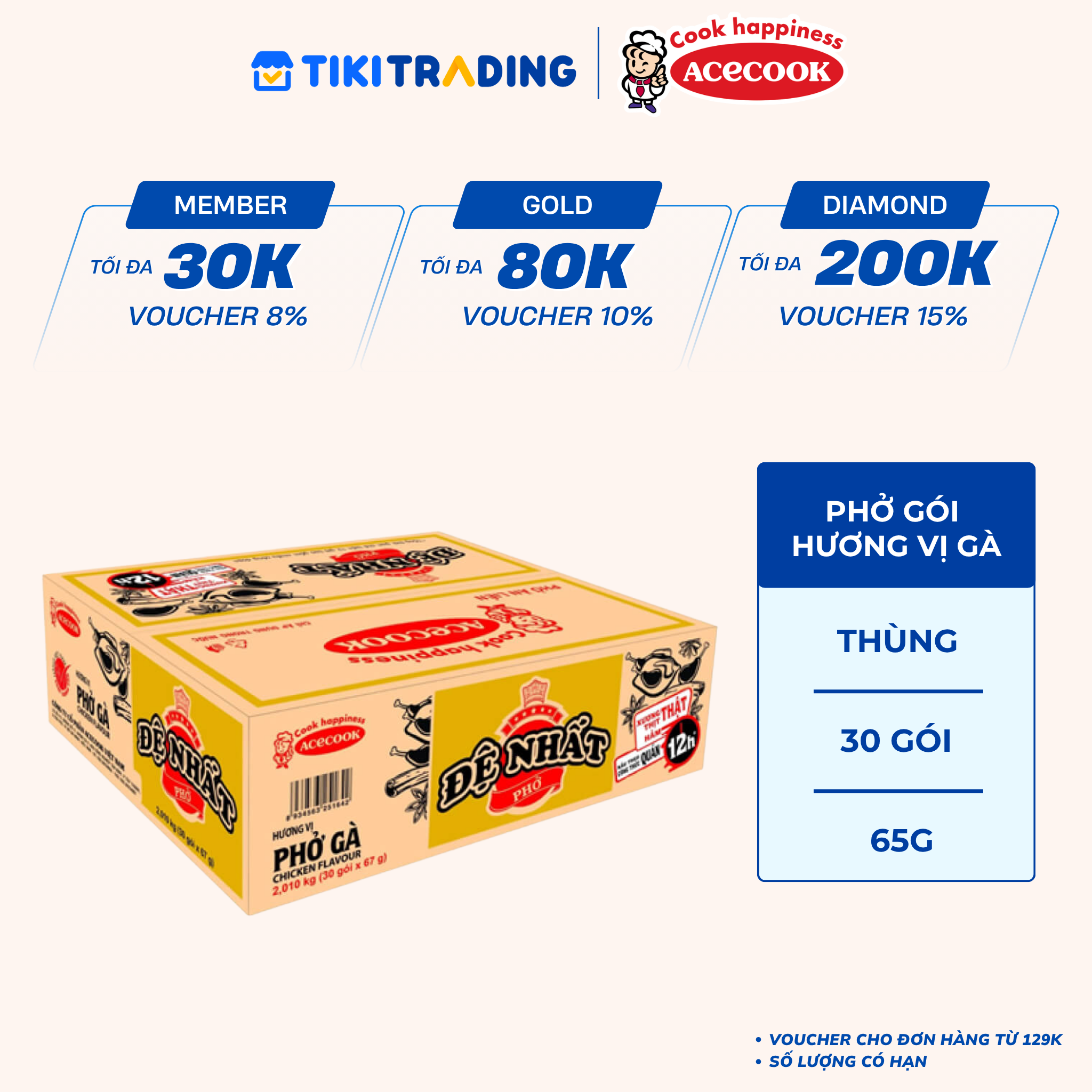 Thùng Phở 30 Gói Đệ Nhất Phở Hương Vị Phở Gà với hương vị thơm ngon, hấp dẫn sẽ lôi cuốn bạn bước vào một thế giới ẩm thực độc đáo của Acecook. Phở gói được sản xuất dựa trên công nghệ hiện đại do các chuyên gia trực tiếp giám sát. Nguồn nguyên liệu sạch, nguồn gốc rõ ràng giúp bạn yên tâm hơn khi sử dụng, đồng thời bổ sung các dưỡng chất cần thiết cho cơ thể.