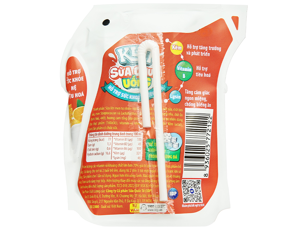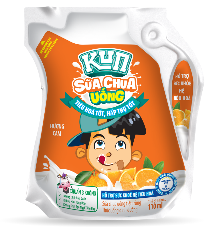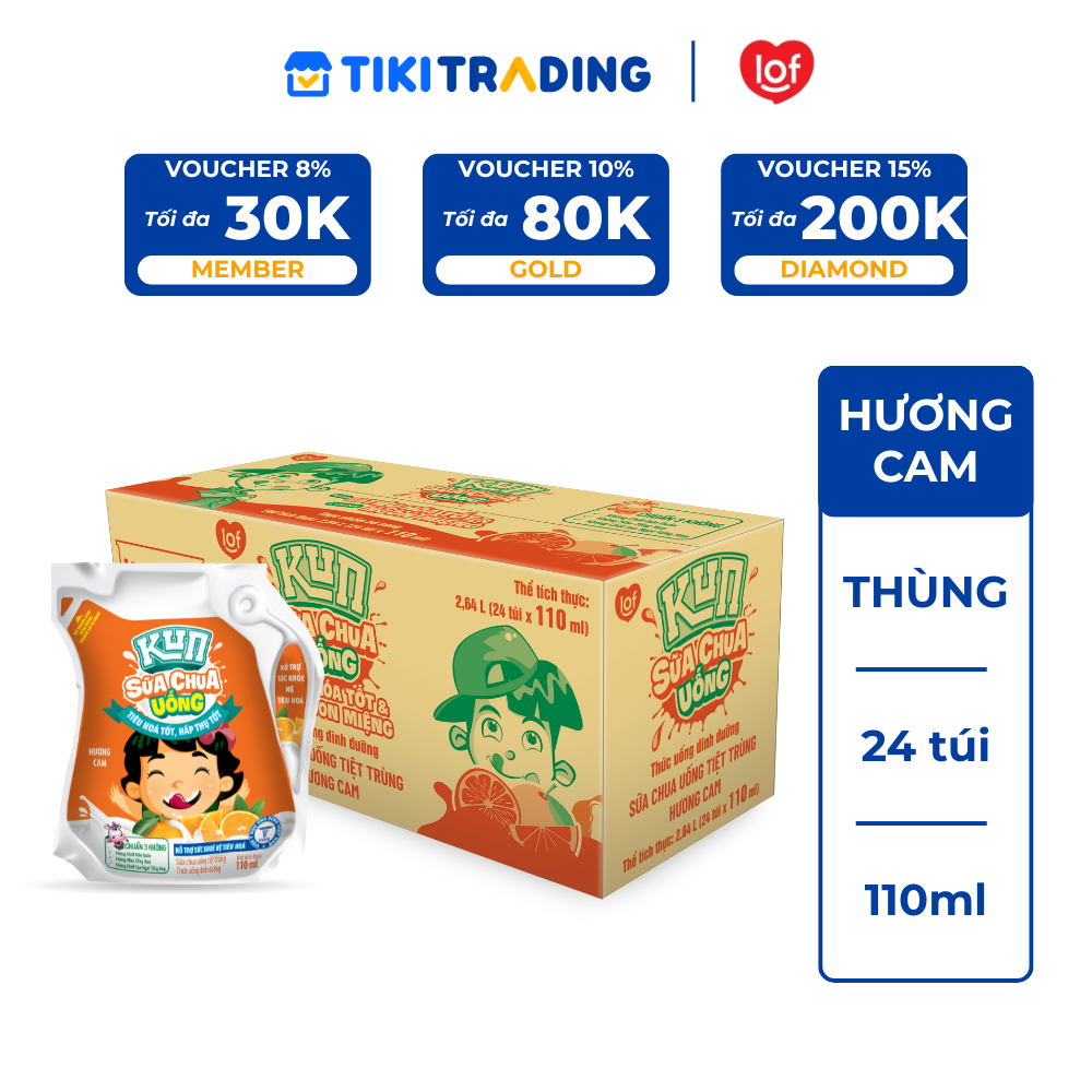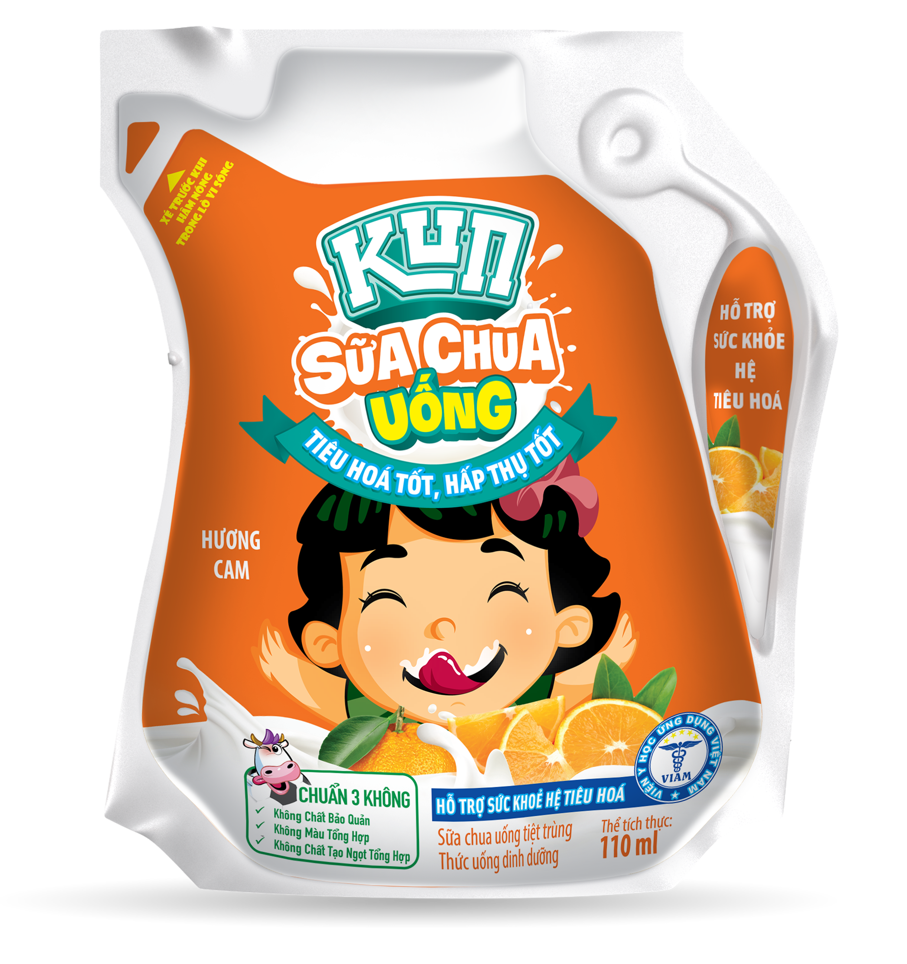 Sữa chua uống Kun được lên men tự nhiên từ sữa, công thức độc quyền hỗ trợ sức khỏe tiêu hóa kết hợp với Viện Y Học Ứng Dụng VIAM, bổ sung bộ 3 vi chất tốt cho tiêu hóa Kẽm: tiêu hóa tốt Lysine: tăng cảm giác ngon miệng Vitamin B1, B2, B6: tăng cường chuyển hóa DỄ DÀNG ƯỚP LẠNH TRONG THÙNG ĐÁ Sữa lên men tự nhiên (46%) (Nước, sữa bò tươi, bột sữa, chất béo sữa, men Streptococcus và Latobacillus), đường tinh luyện, mạch nha, chất ổn định (INS 466, INS 440), hương liệu tổng hợp (hương cam), phẩm màu tự nhiên (INS 160a(ii)), vitamin và khoáng chất (B1, B2, B6, kẽm lactat), lysine. Sản phẩm có chứa sữa Sử dụng cho trẻ trên 3 tuổi. Dùng từ 2 đến 3 túi một ngày. Lắc đều trước khi sử dụng. Sản phẩm cho 1 lần sử dụng. Ngon hơn khi uống lạnhGiá sản phẩm trên Tiki đã bao gồm thuế theo luật hiện hành. Bên cạnh đó, tuỳ vào loại sản phẩm, hình thức và địa chỉ giao hàng mà có thể phát sinh thêm chi phí khác như phí vận chuyển, phụ phí hàng cồng kềnh, thuế nhập khẩu (đối với đơn hàng giao từ nước ngoài có giá trị trên 1 triệu đồng).....