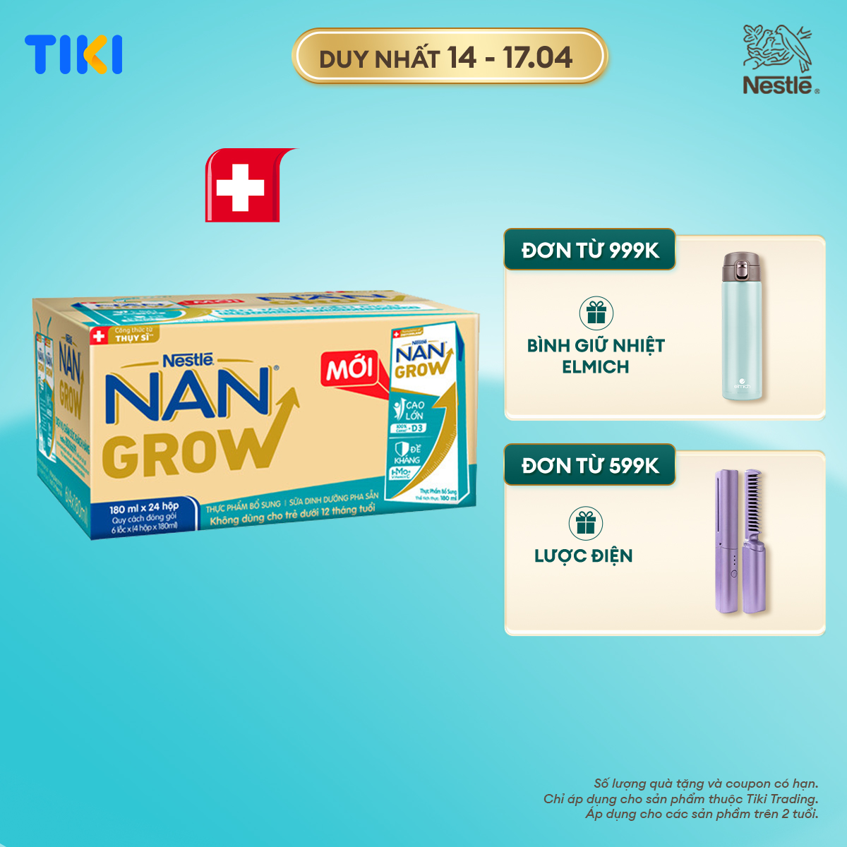 Thông số kỹ thuật Thùng sữa bột pha sẵn Nestlé NANGROW 6(4x180ml) sữa mát công thức từ Thụy Sĩ với 100% Canxi giúp bé cao lớn vượt trội dành cho bé từ 1 tuổi