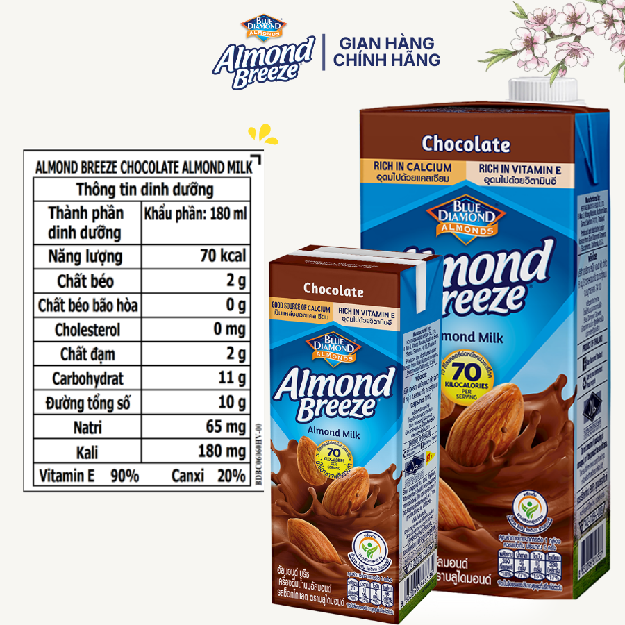 Hương vị đậm đà từ chocolate cacao Bỉ kết hợp với nguồn năng lượng giàu dưỡng chất lên đến 70 kilocalories, ALMOND BREEZE CHOCOLATE là sự lựa chọn đầu tiên để bạn khởi động ngày mới đầy năng lượng.