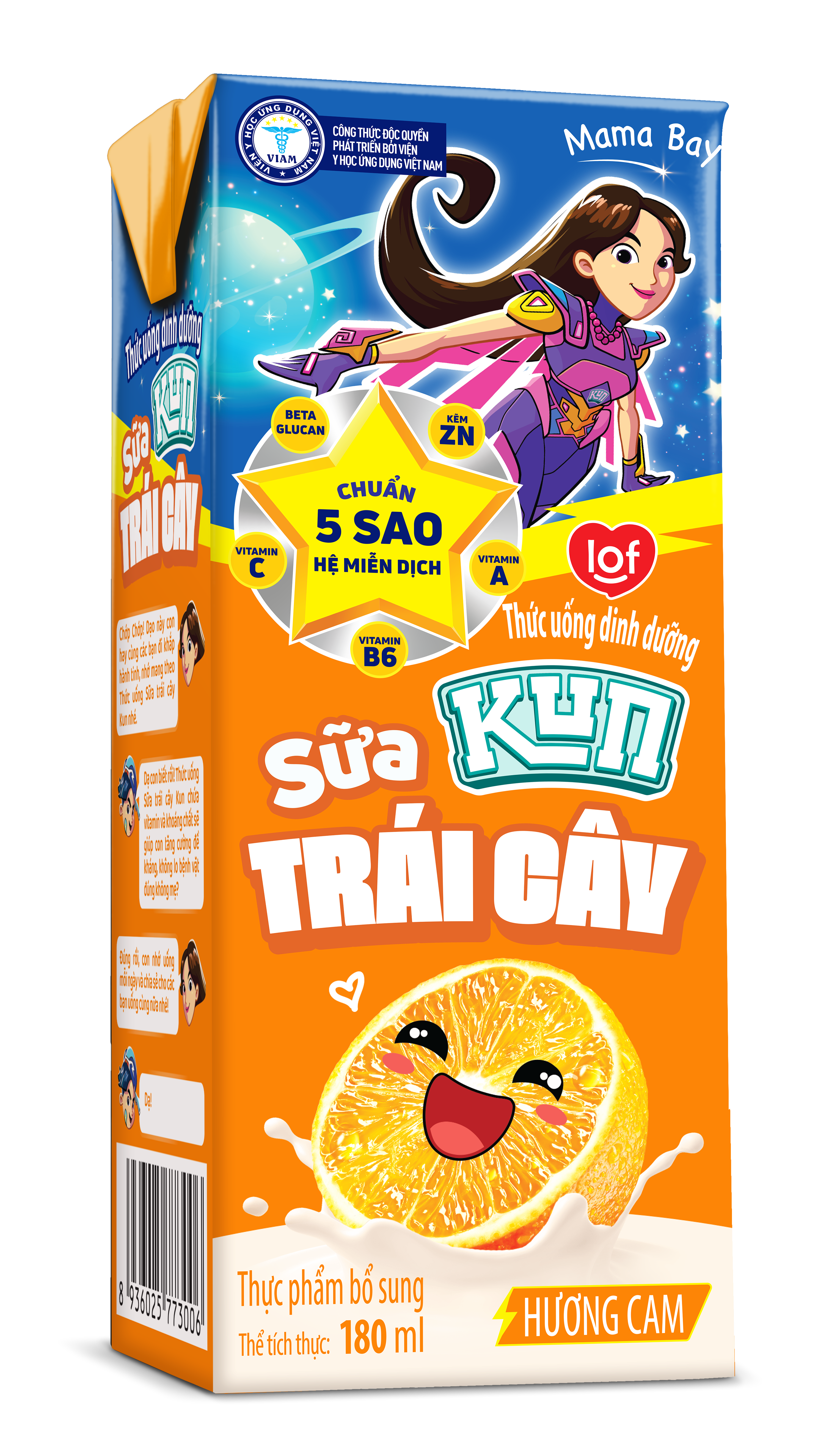 Sữa trái cây Kun với bộ công thức chuẩn 5 sao hệ miễn dịch – được phát triển độc quyền bởi Viện y học Việt Nam VIAM , đặc biệt hỗ trợ đề kháng nhờ thành phần Beta Glucan và các loại Vitamin C, B6, A, giúp bé khỏe mạnh mỗi ngày. • Beta Glucan: Được chiết xuất từ nấm men, hỗ trợ tăng cường Hệ miễn dịch. • Vitamin C hỗ trợ tăng Sức đề kháng. • Vitamin B6 hỗ trợ Hệ thần kinh. • Vitamin A hỗ trợ sáng mắt. Kẽm hỗ trợ Trí Não Đáp ứng chuẩn 3 không: • Không Chất Bảo Quản • Không Màu Tổng Hợp • Không Chất Tạo Ngọt Tổng Hợp Nước, nước ép trái cây nguyên chất (30 g/L), đường tinh luyện, đường fructose, bột sữa (20 g/L), chất béo thực vật, chất ổn định (INS 466, INS 418), chất điều chỉnh độ acid (INS 330, INS 270), hương liệu tổng hợp (hương trái cây), phẩm màu tự nhiên (INS 120, INS 160b(ii)), vitamin và khoáng chất (A, B6, C, Kẽm lactat), Beta glucan. Sản phẩm có chứa sữa. ĐỐI TƯỢNG SỬ DỤNG Sử dụng cho trẻ em từ 2 tuổi trở lên. Dùng 2 đến 3 hộp mỗi ngày. Lắc đều trước khi sử dụng. Sản phẩm cho 1 lần sử dụng. Bảo quản nơi khô ráo và thoáng mát, tránh ánh nắng trực tiếp. Hiện tượng thay đổi màu sắc và lắng đọng tự nhiên không làm ảnh hưởng đến chất lượng sản phẩmGiá sản phẩm trên Tiki đã bao gồm thuế theo luật hiện hành. Bên cạnh đó, tuỳ vào loại sản phẩm, hình thức và địa chỉ giao hàng mà có thể phát sinh thêm chi phí khác như phí vận chuyển, phụ phí hàng cồng kềnh, thuế nhập khẩu (đối với đơn hàng giao từ nước ngoài có giá trị trên 1 triệu đồng).....
