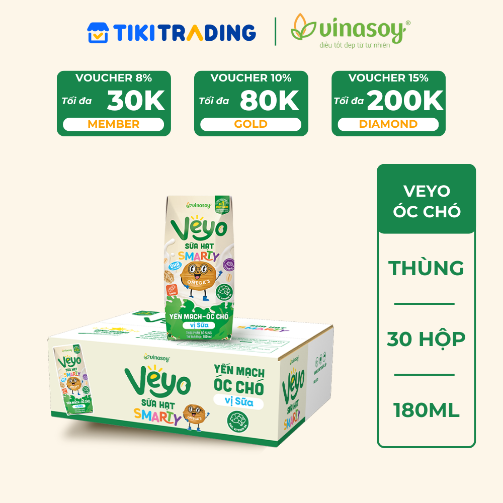Thông số kỹ thuật Thùng Veyo Sữa hạt SMARTY Yến mạch - Óc chó vị sữa (30hộp x 180ml)