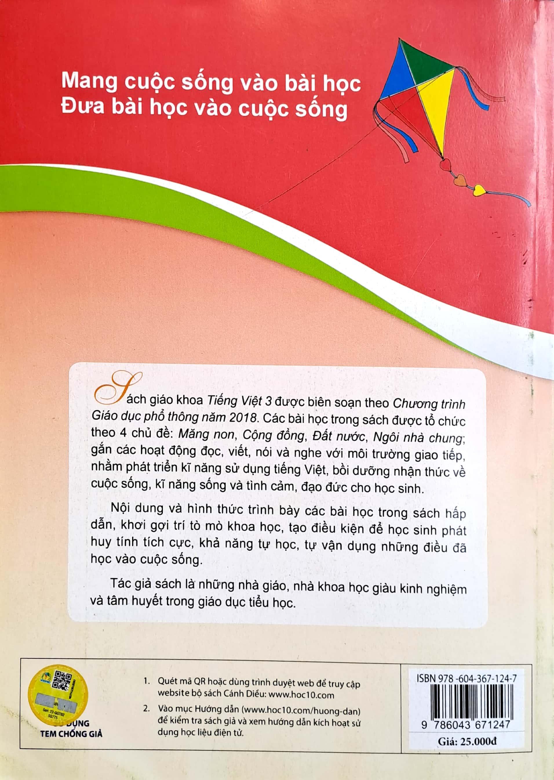 Tiếng Việt 3 - Tập 1 (Cánh Diều) (Chuẩn)Giá sản phẩm trên Tiki đã bao gồm thuế theo luật hiện hành. Bên cạnh đó, tuỳ vào loại sản phẩm, hình thức và địa chỉ giao hàng mà có thể phát sinh thêm chi phí khác như phí vận chuyển, phụ phí hàng cồng kềnh, thuế nhập khẩu (đối với đơn hàng giao từ nước ngoài có giá trị trên 1 triệu đồng).....