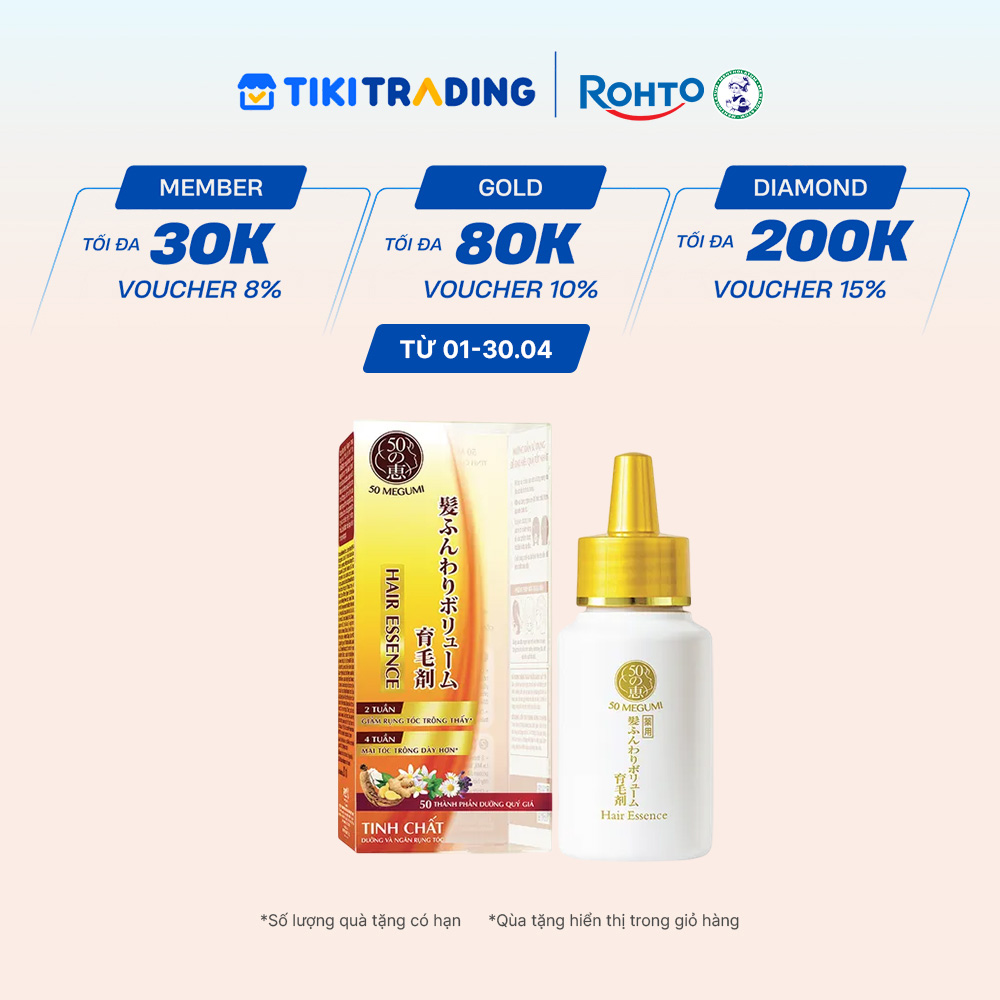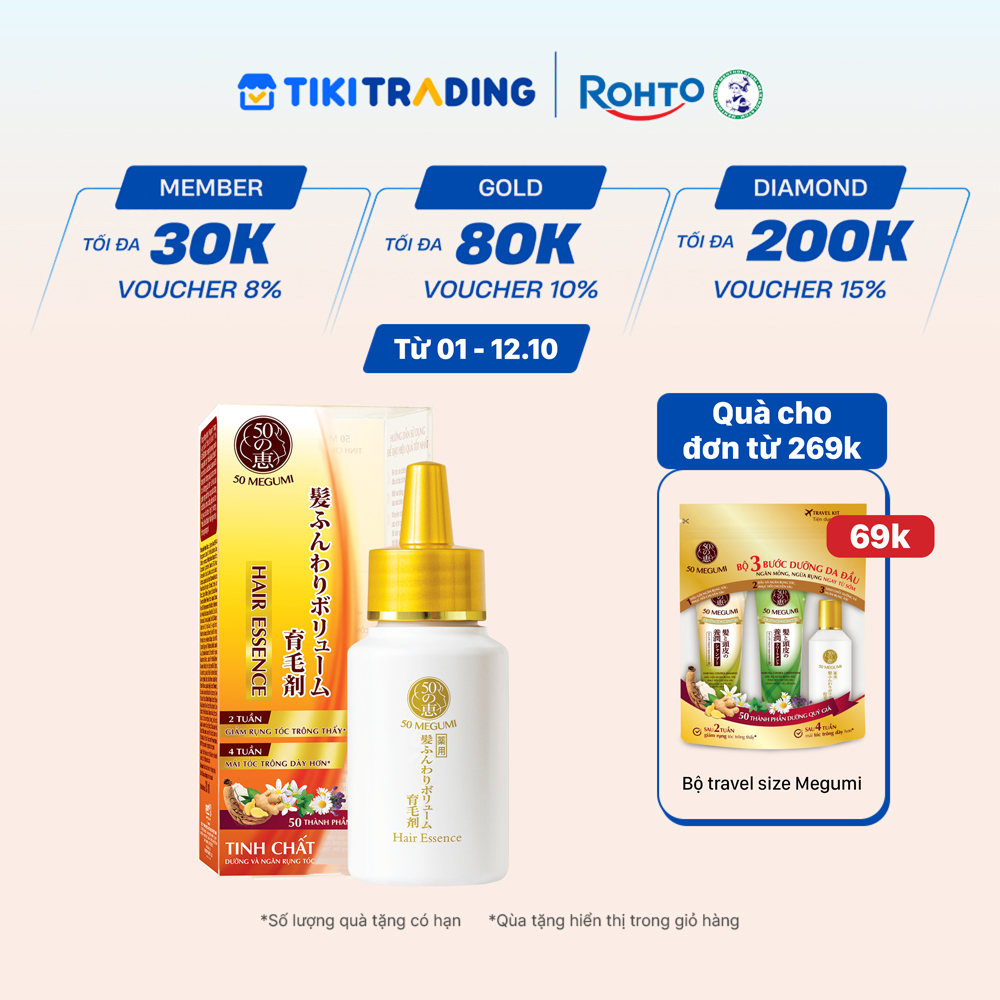 Tinh chất dưỡng tóc, ngăn rụng tóc 50 Megumi với 50 thành phần dưỡng quý giá được chọn lọc kĩ lưỡng phù hợp với tình trạng tóc và da đầu trước ngưỡng tuổi 40, cung cấp nguồn dinh dưỡng tối ưu cho da đầu, giữ mái tóc dày và khỏe mạnh.