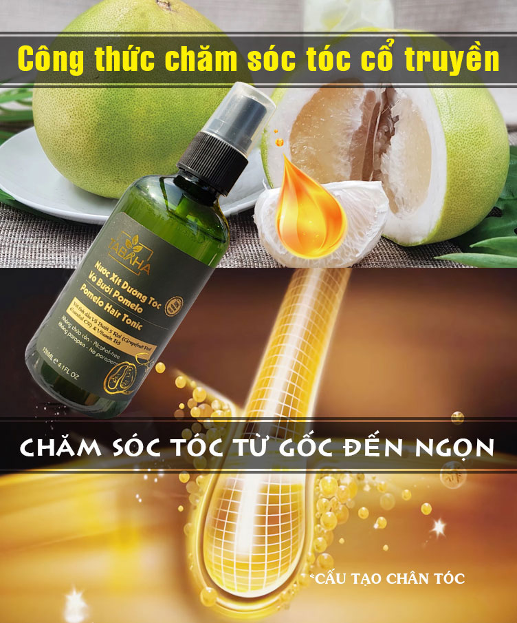 "Pomelo - dưỡng tóc tinh dầu vỏ bưởi" với thành phần tinh dầu vỏ bưởi kết hợp với những nguyên liệu từ thiên nhiên đã được nghiên cứu kĩ lưỡng sẽ tác động vào từng tế bào tóc và da đầu, giúp tóc ngày càng chắc khoẻ và suôn mượt hơn, đặc biệt là ngăn ngừa tình trạng rụng tóc và phục hồi tóc hư tổn hiệu quả.