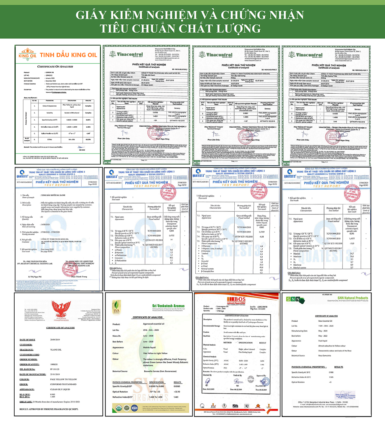 - Sản phẩm đạt mọi bài kiểm định chất lượng quốc tế và Việt Nam về độ an toàn, không có hại cho sức khỏe, tiêu chuẩn USDA về độ tinh khiết của sản phẩm tinh dầu