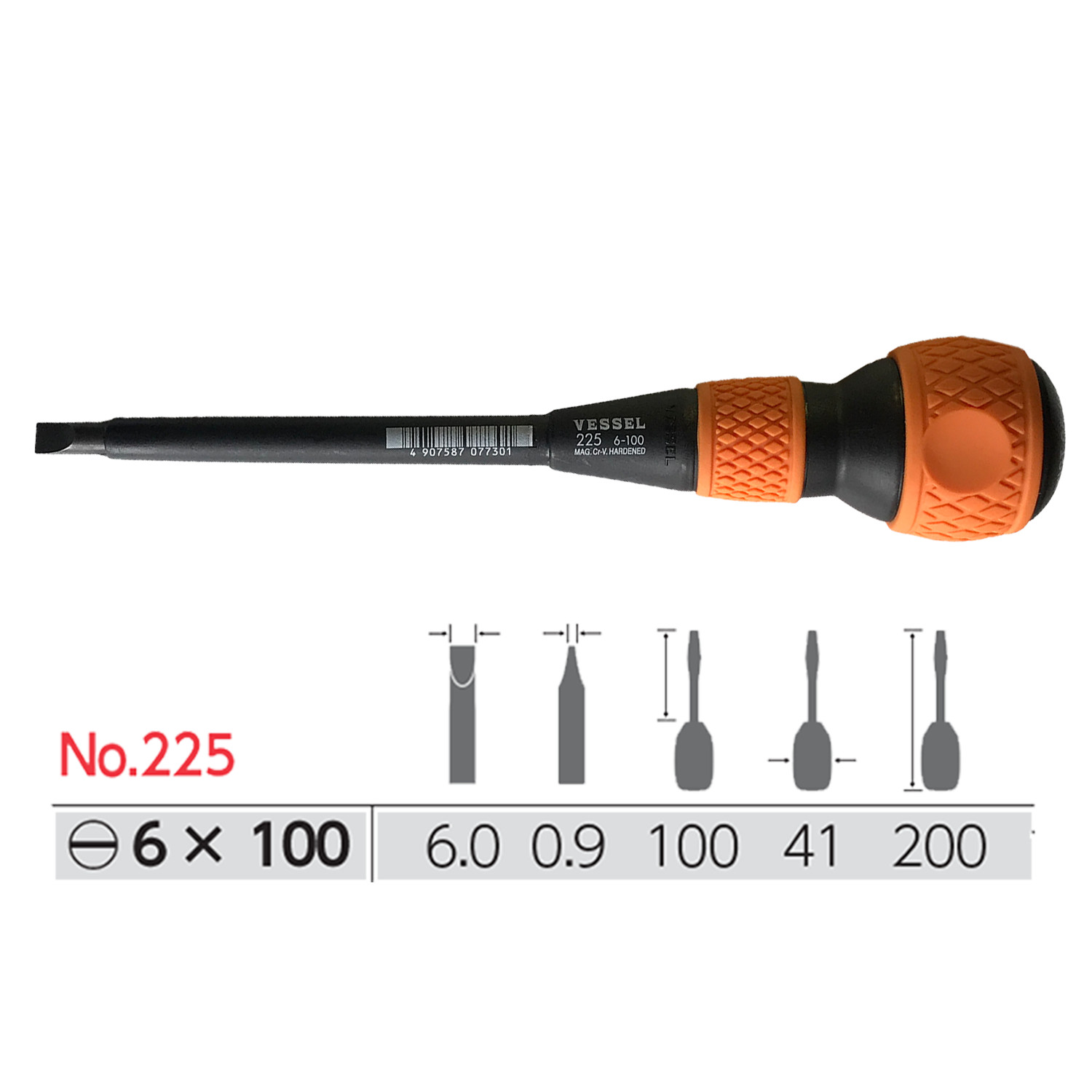 Thông số kỹ thuật Tô vít tay cầm kiểu bóng No.225 bọc cách điện Vessel sản xuất tại Nhật Bản