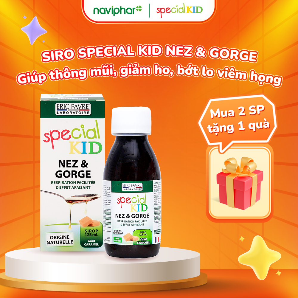 Special Kid là thương hiệu nhập khẩu nguyên hộp từ Pháp, đáp ứng hầu hết nhu cầu phòng và hỗ trợ điều trị các bệnh thường gặp của trẻ trong những năm tháng đầu đời. Special Kid Nez & Gorge được bào chế chuyên biệt dành cho trẻ em, mùi vị dễ chịu, chỉ cần sử dụng 1 lần/ngày. Tiết kiệm. Dễ nhớ![TPBVSK Special Kid Nez et Gorge - Hỗ trợ giảm viêm họng, viêm phế quản, Giúp thông mũi, giảm ho, bớt lo viêm họng (125ml)[Siro – Nhập khẩu Pháp]](https://salt.tikicdn.com/ts/tmp/b1/77/34/1dfaaa74083cc47c20ef13b35301a672.jpg)