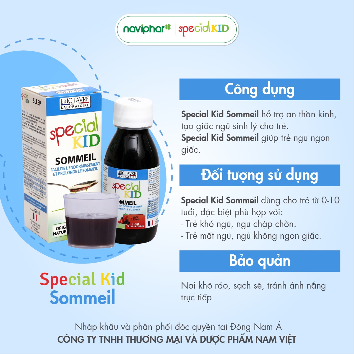 Special Kid là thương hiệu nhập khẩu nguyên hộp từ Pháp, đáp ứng hầu hết nhu cầu phòng và hỗ trợ điều trị các bệnh thường gặp của trẻ trong những năm tháng đầu đời. Special Kid Sommeil được bào chế chuyên biệt dành cho trẻ em, mùi vị dễ chịu, chỉ cần sử dụng 1 lần/ngày. Tiết kiệm. Dễ nhớ![TPBVSK Special Kid Sommeil – Giúp ngủ ngon giấc, ngủ sâu giấc (125ml) [Siro – Nhập khẩu Pháp]](https://salt.tikicdn.com/ts/tmp/29/33/6e/a6c0f3bec252c0ca4fa0f0563b2fe558.jpg)